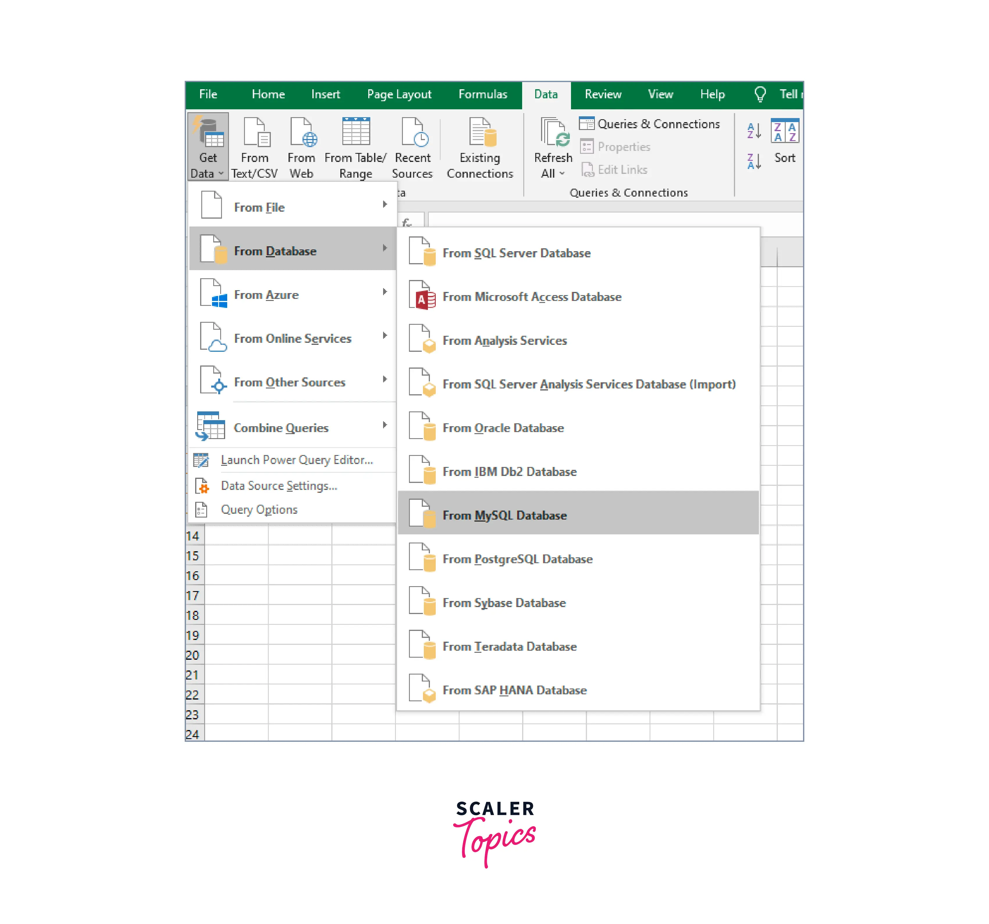 - For that, create a .xlsx file and under Data tab and choose Get Data option