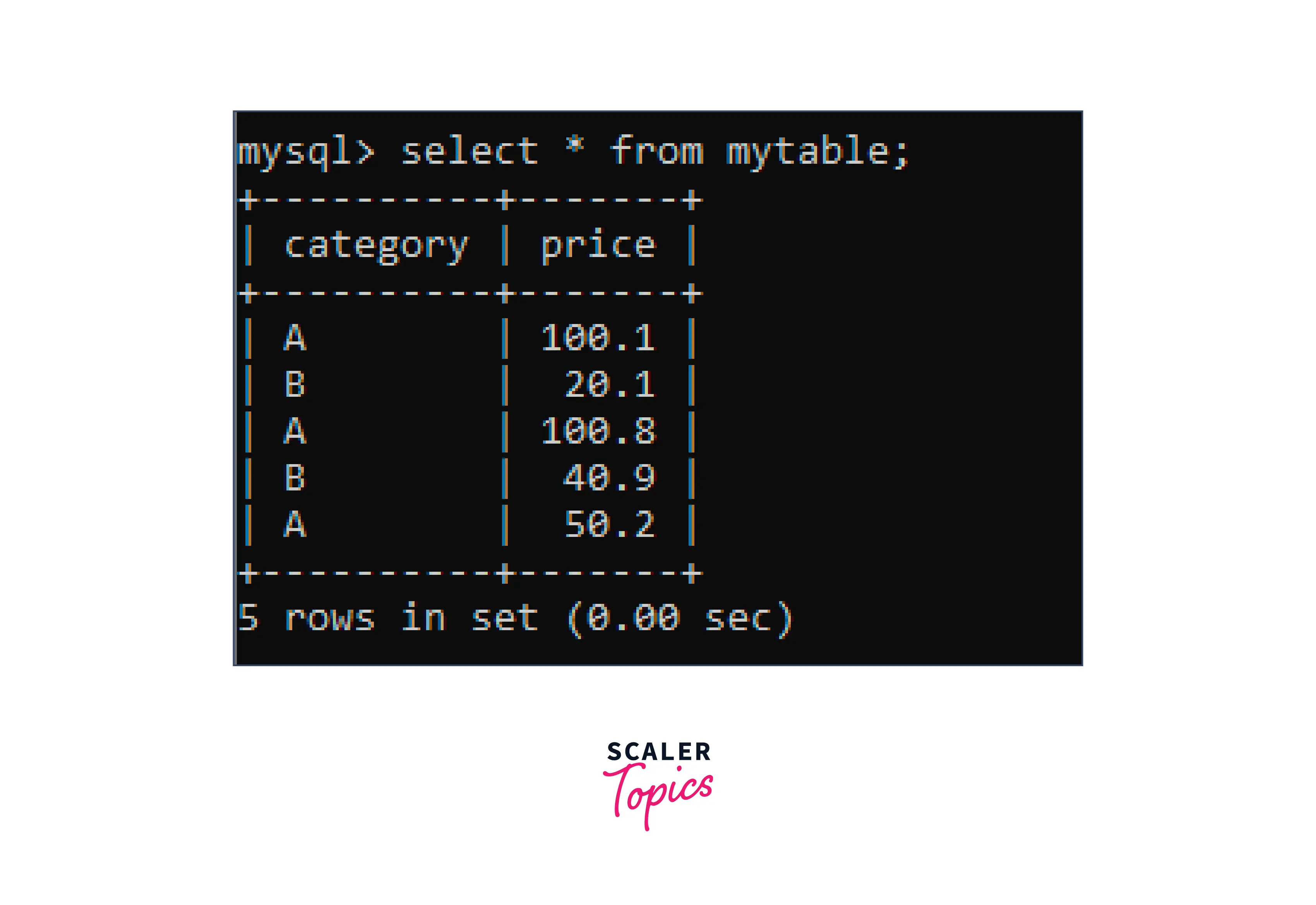 We will be using the same table as we have used in the above examples. So let's see the step-by-step process:
