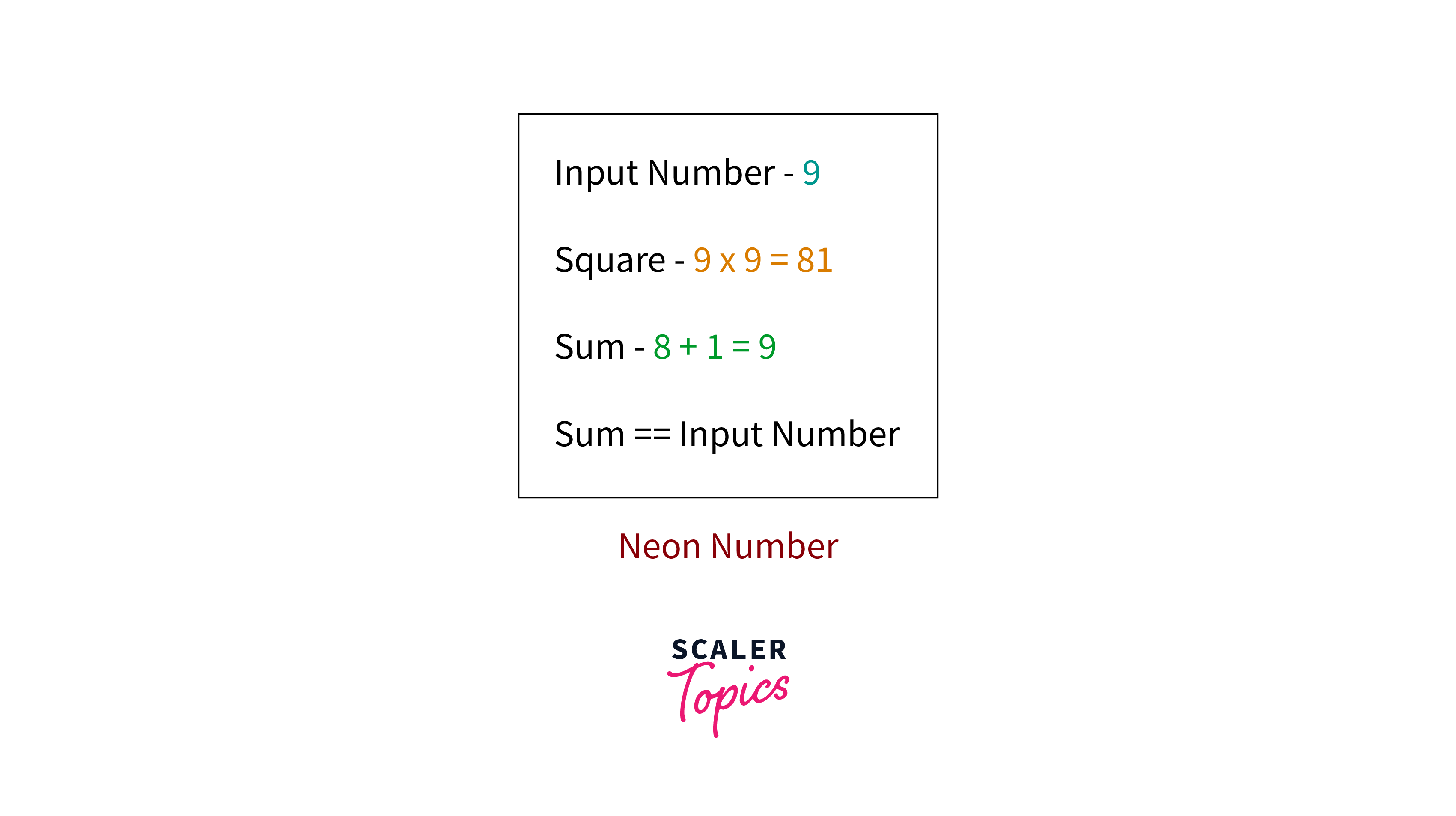 - Neon number is a magical number where the sum of digits of the square of the number equals the number itself.