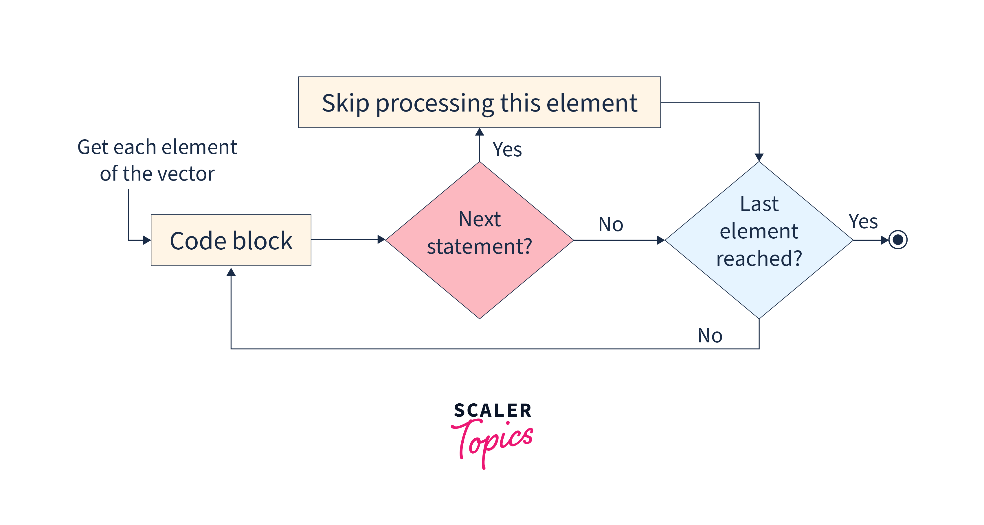 Filtering out undesired elements: The "next" statement can be used to filter out specific elements from a loop. For instance, if you have a loop iterating over a vector and you want to exclude certain values, you can use the "next" statement along with an "if" condition to achieve this:
