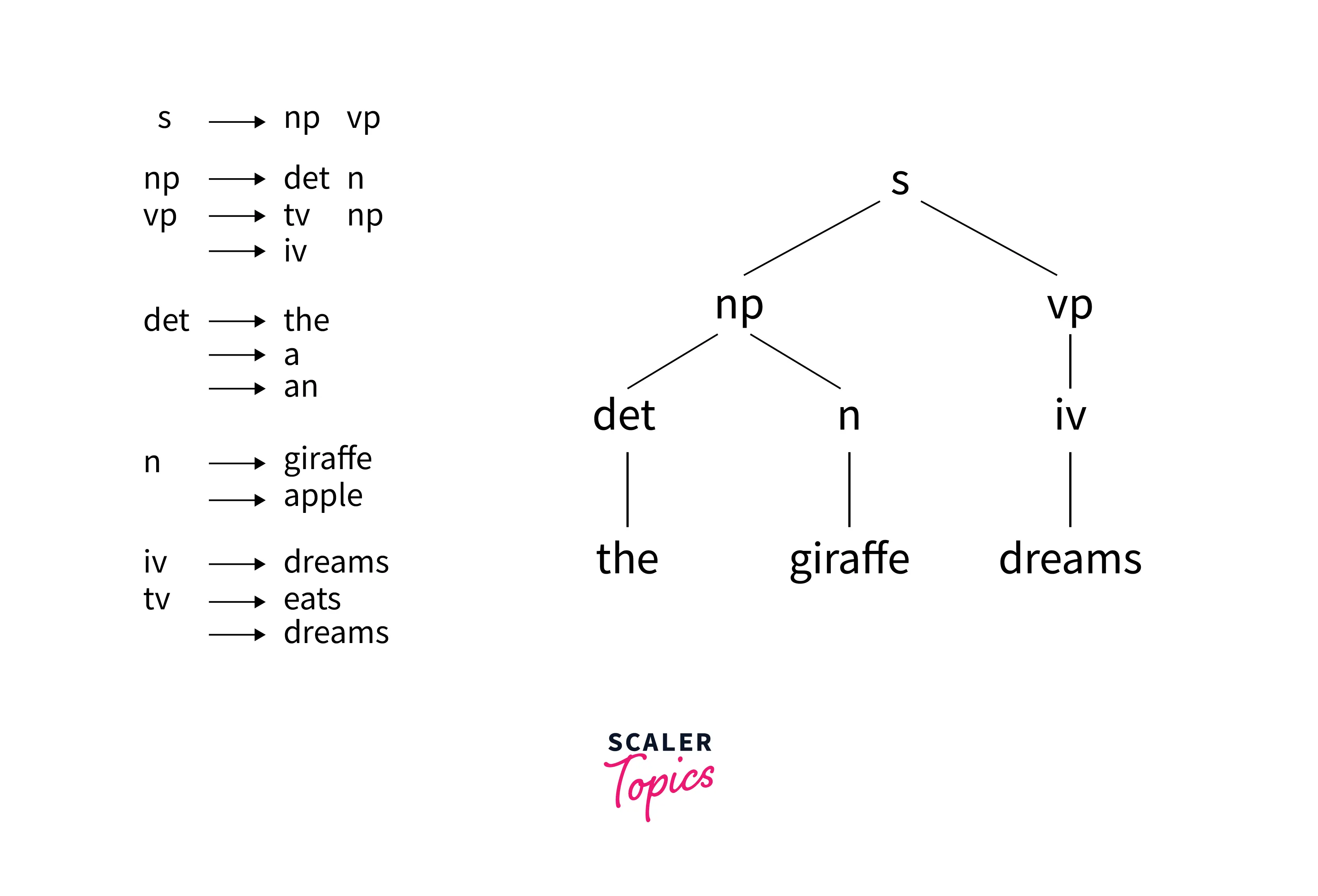 - Example: A parse of the sentence "the giraffe dreams" is: s => np vp => det n vp => the n vp => the giraffe vp => the giraffe iv => the giraffe dreams