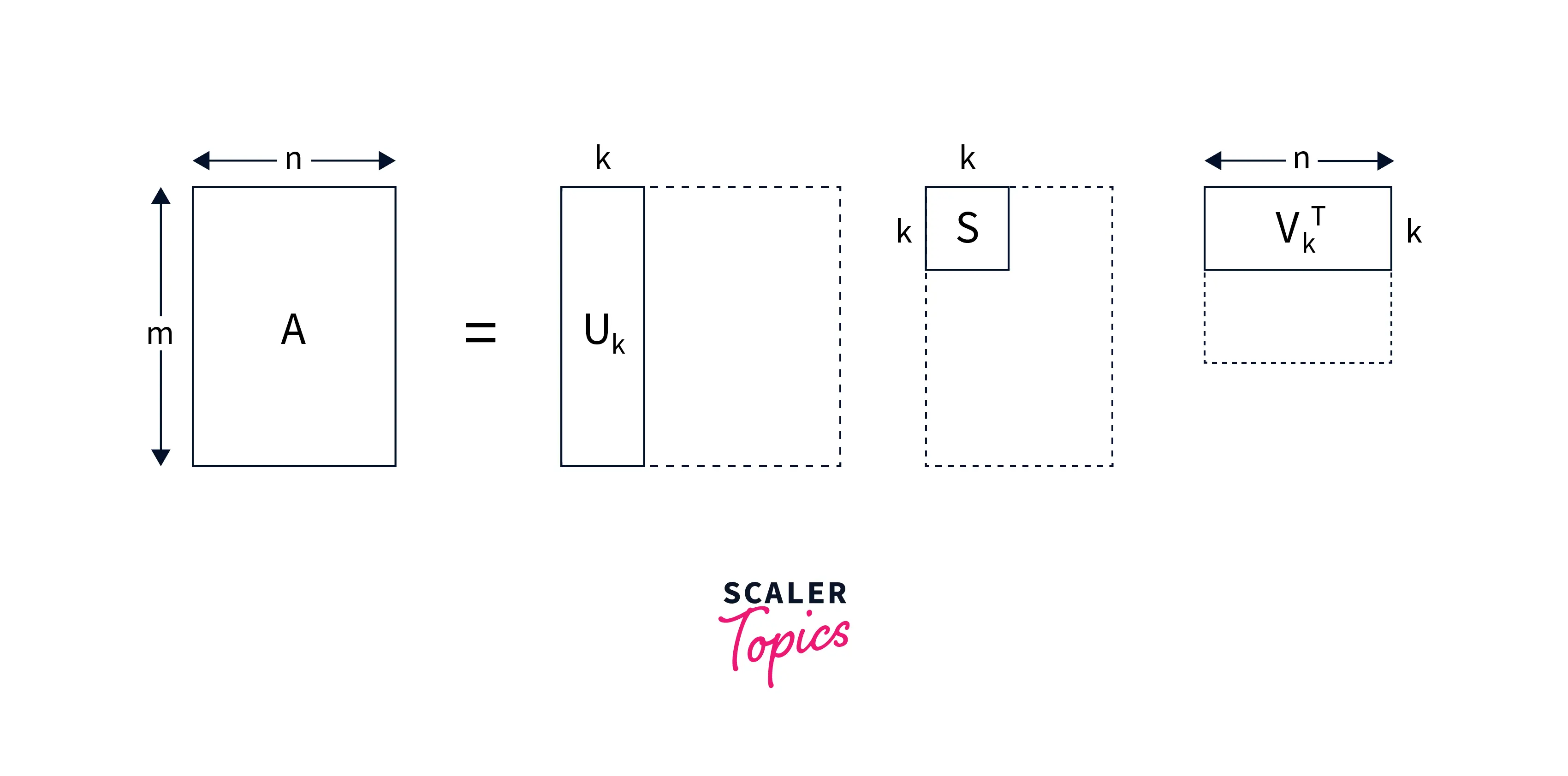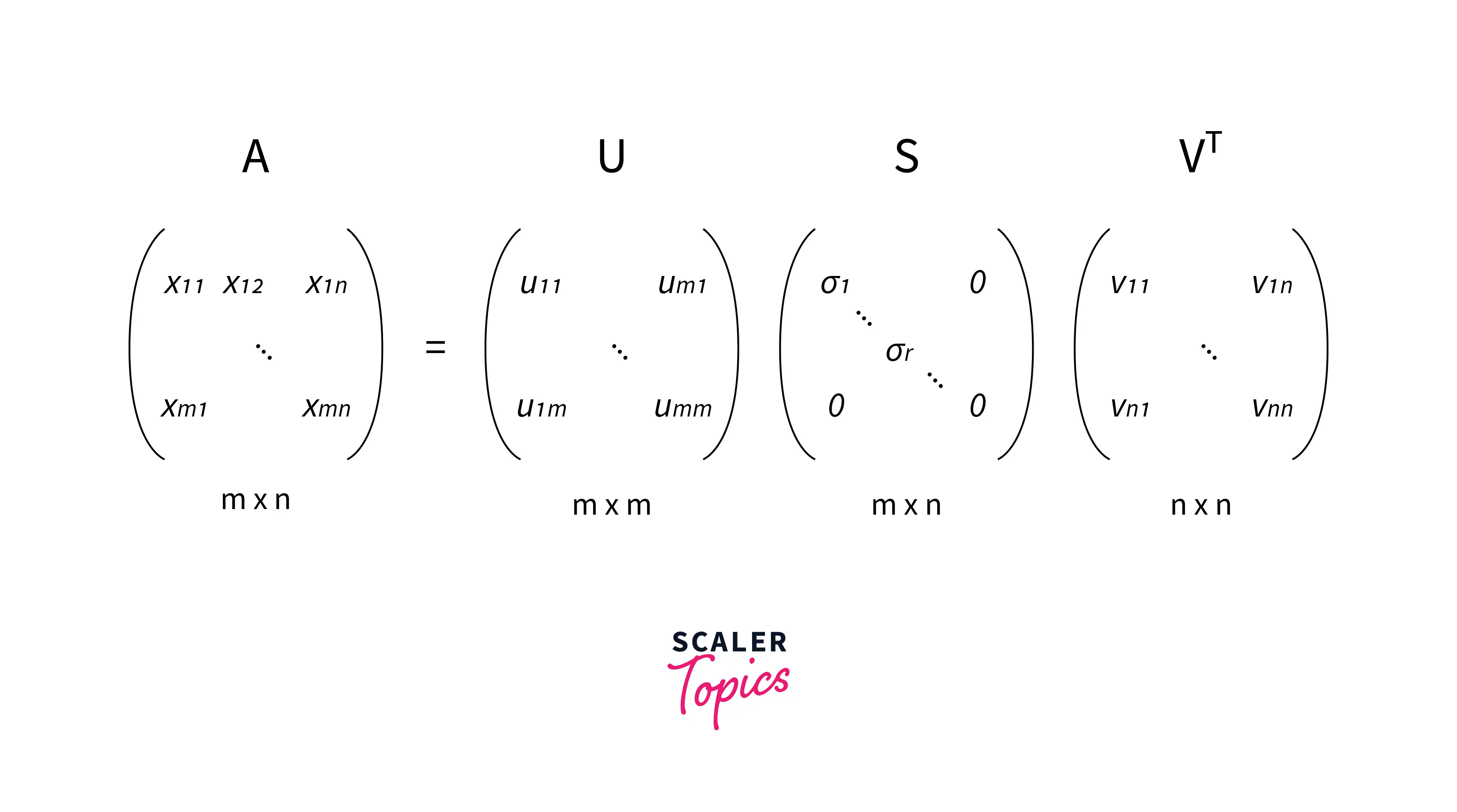 - Where U and V are orthogonal matrices with orthonormal eigenvectors chosen from AAᵀ and AᵀA respectively.