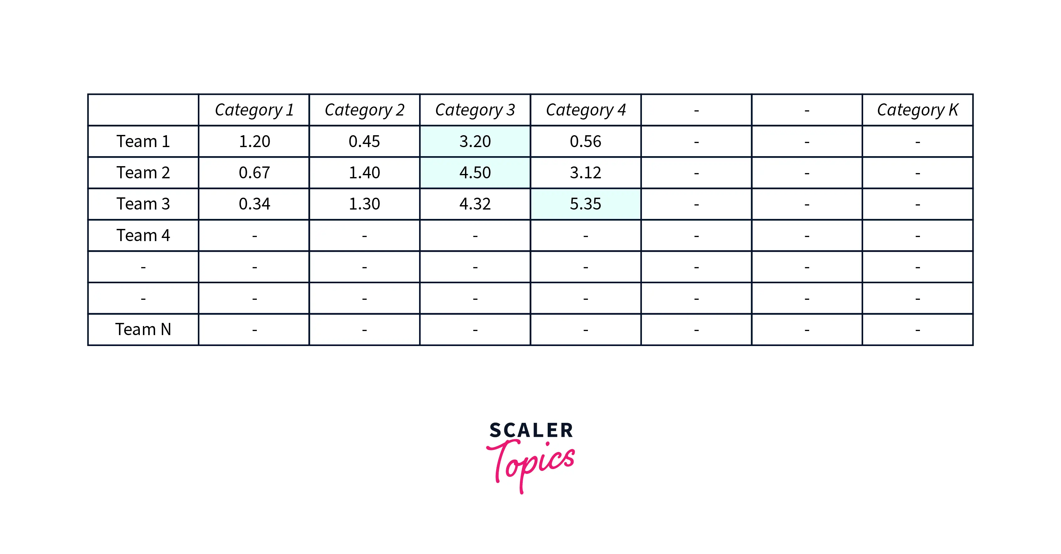 - This will be represented in a matrix called the term-category matrix (V) and also the term-topic matrix