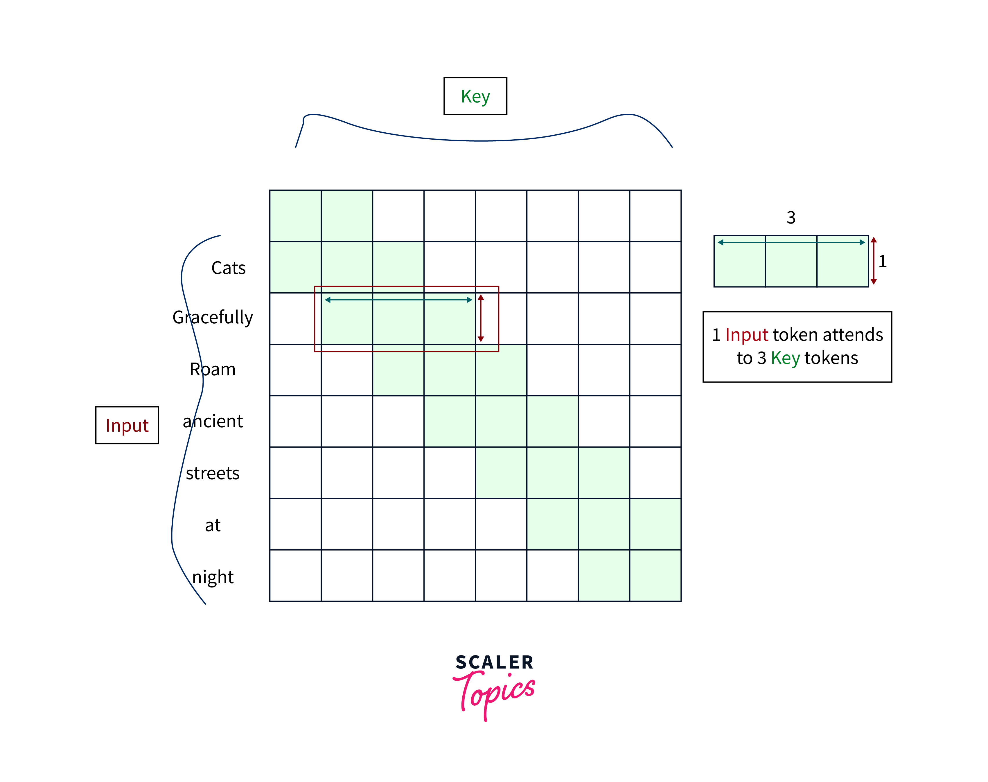 Complementing the Global Attention, Longformer employs the Local Sliding Window Attention mechanism. This mechanism enables the model to capture both local and long-range dependencies within a sequence. By sliding a window across the tokens, Longformer can capture context at varying distances from each token. This allows the model to consider not only the nearby context but also connections that extend further away, enriching its understanding of the text.