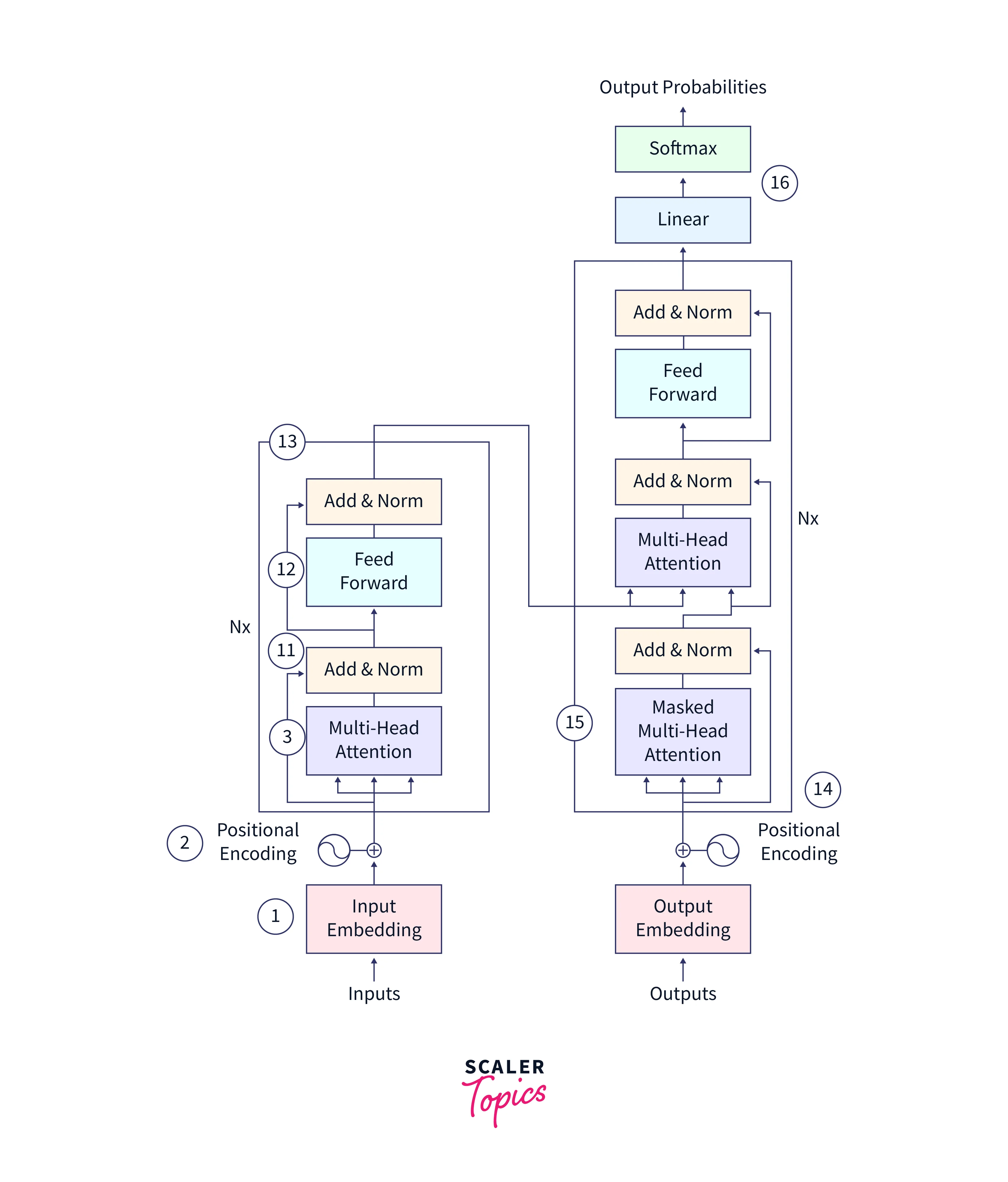 - Output probabilities: After passing through the softmax function, the output is a probability distribution over the possible output classes. For example, in a machine translation task, the output classes could be the words in the target language. In this case, the output probabilities would represent the probability of each word being the next word in the output sequence.