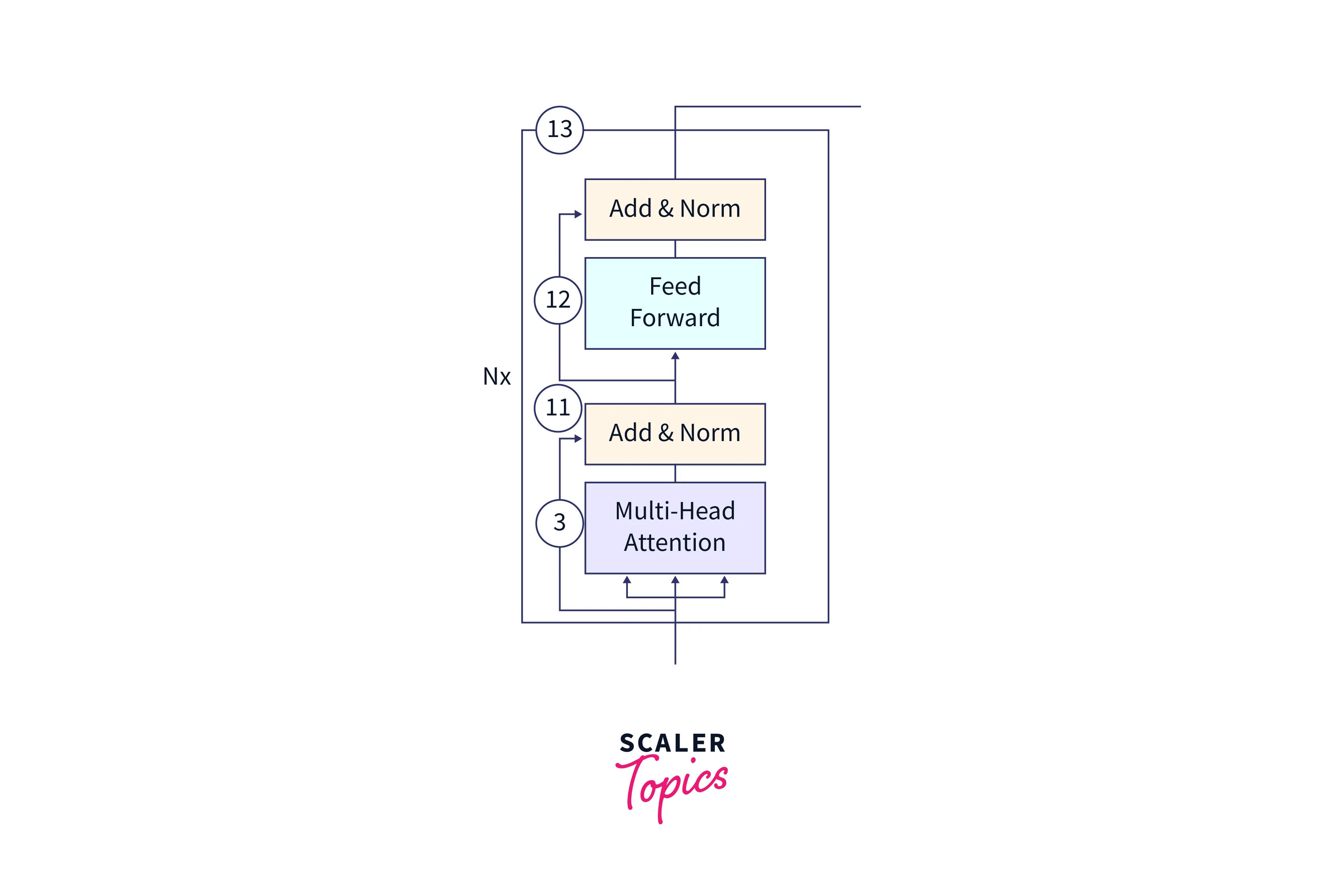 For this article, only steps 1 to 13 are relevant, as we only focus on the transformer's encoder part.