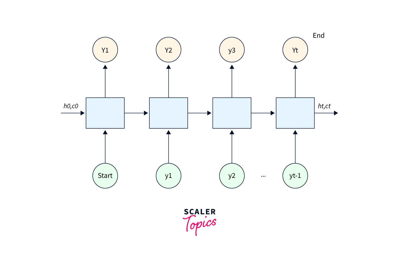"h" is the hidden state, and "c" is the cell state. - Here's what the decoder looks like:-