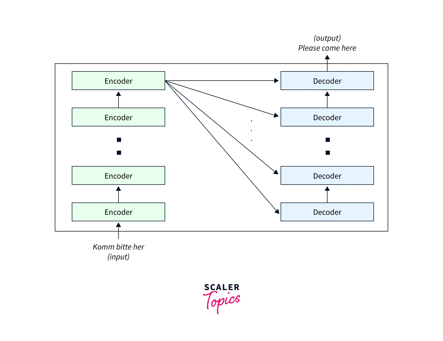 - The output from the last Encoder in the encoder stack is passed to all the decoders in the decoder stack, as shown in the figure below: