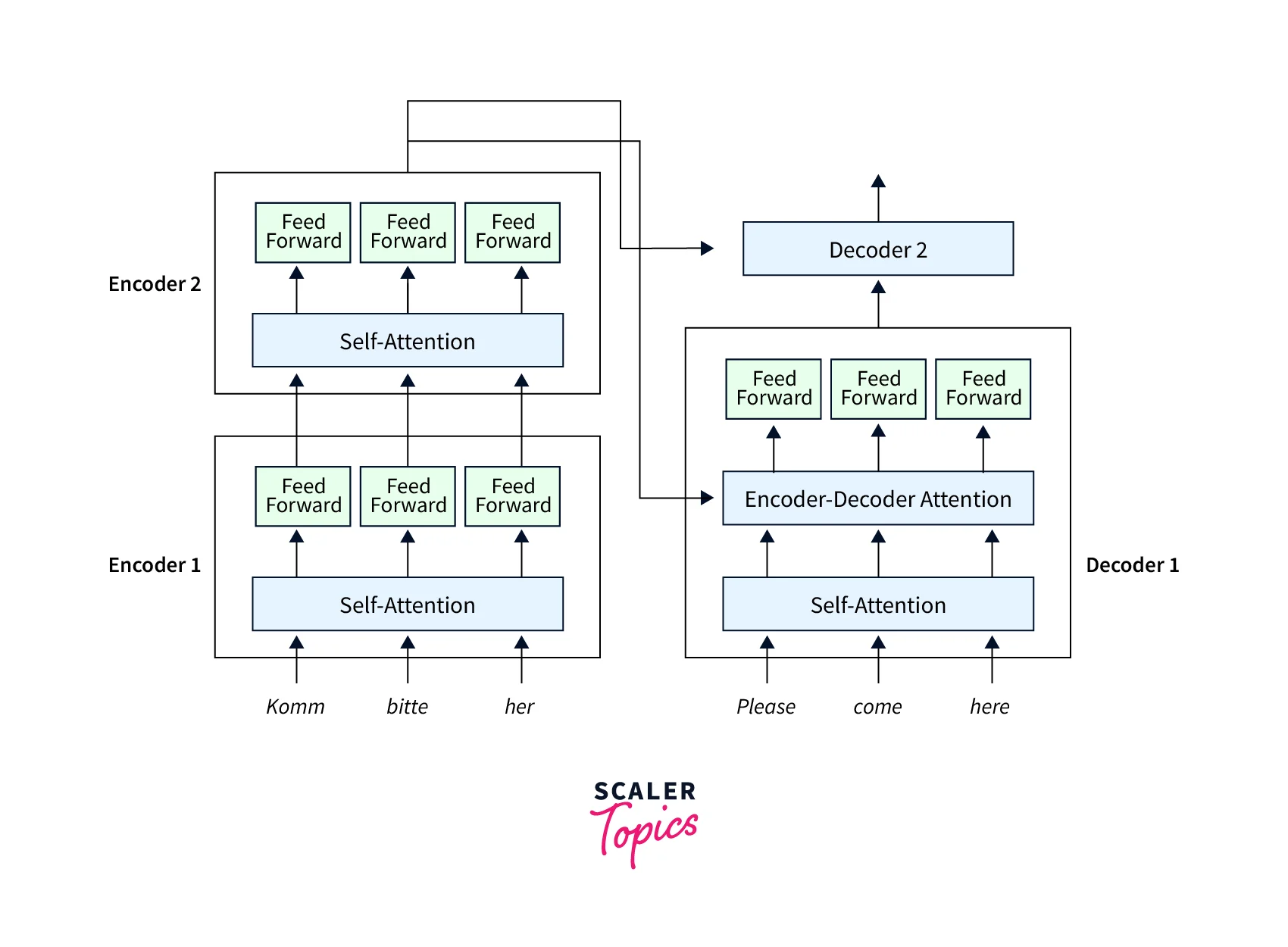 In addition to the self-attention and feedforward layers, the decoders also have one more layer of the Encoder-Decoder Attention layer. This helps the decoder focus on the right parts of the input sequence.