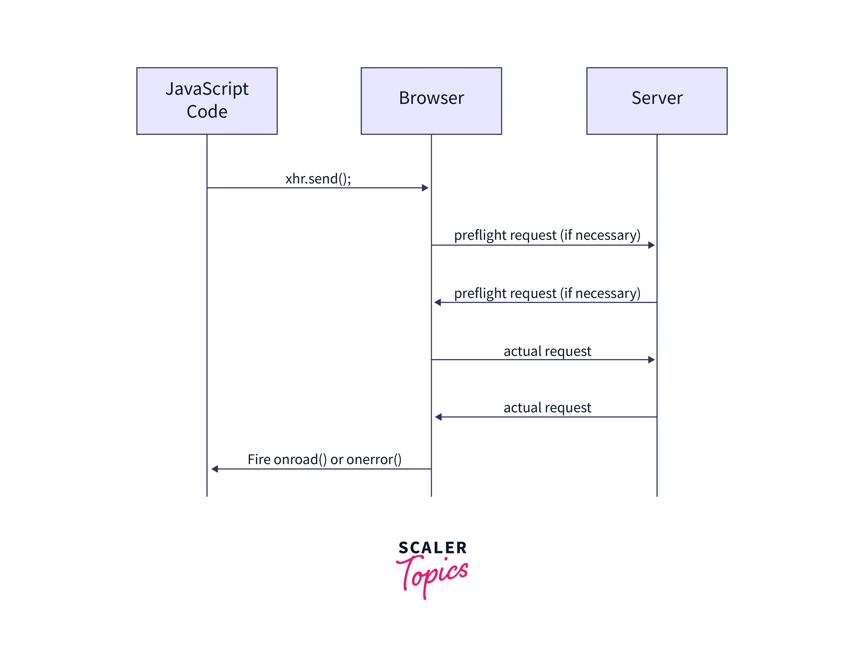 Every request must have a few mandatory properties like the request methods or the content type. Sometimes, this data is missing from the request headers. In these situations, the browser makes a pre-flight request to the back-end server with the available data to confirm if the back-end will serve the requests or not. Think of this pre-flight request as a check to see if future requests will get a response or not. At first, this seems to be an inefficient approach but this response can be cached for a certain time. To use a pre-flight request, we can use the following snippet :