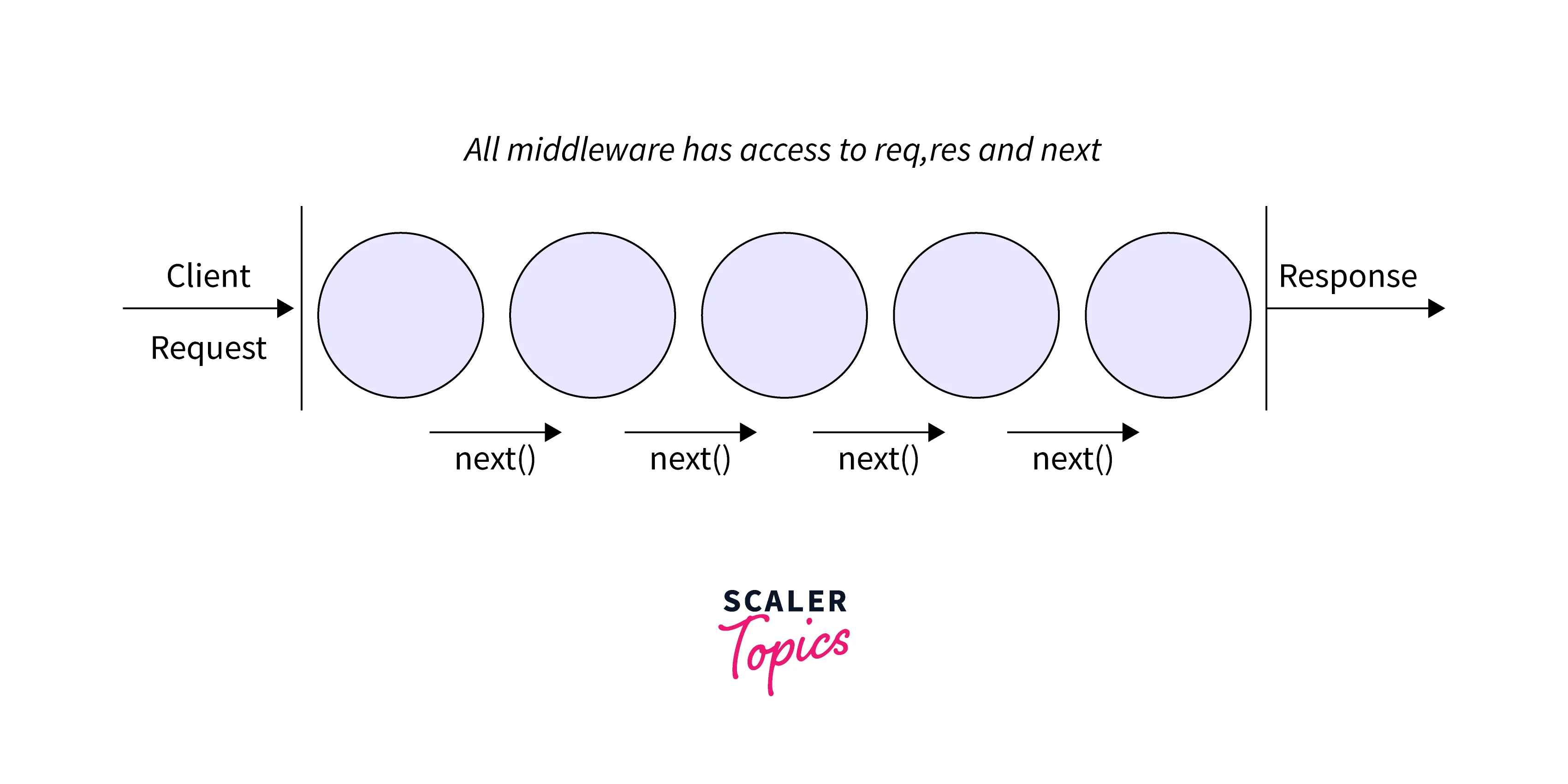 - Generally a chain of middleware is used where after one middleware is executed the next is called. The last middleware function passes the request to the web server. After that, the response is sent back to the browser.