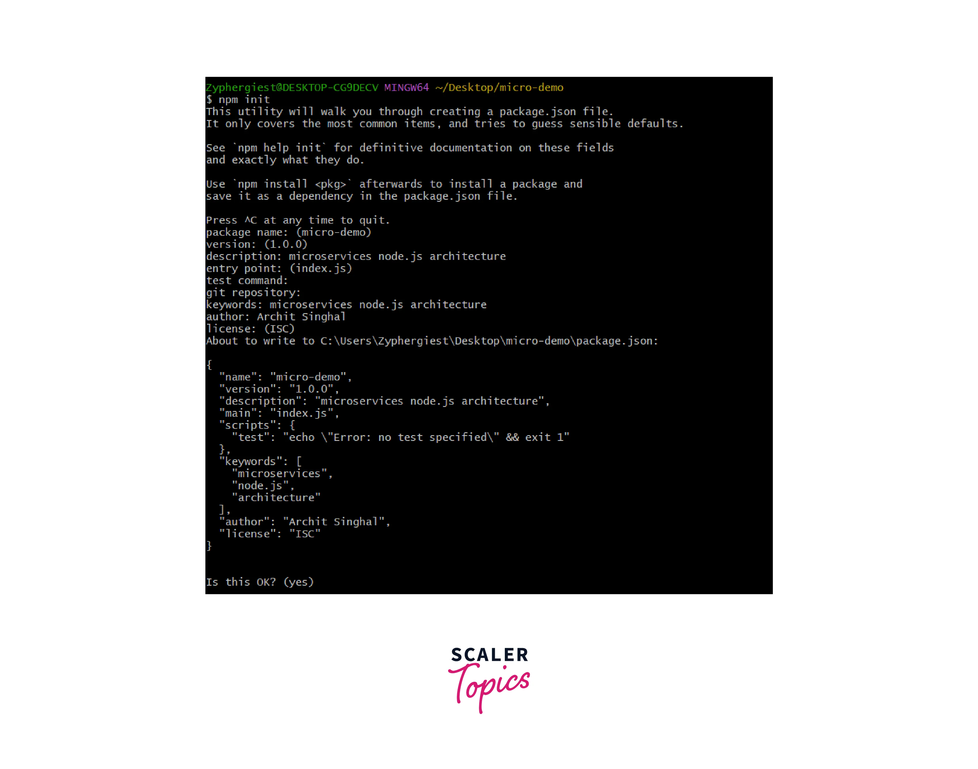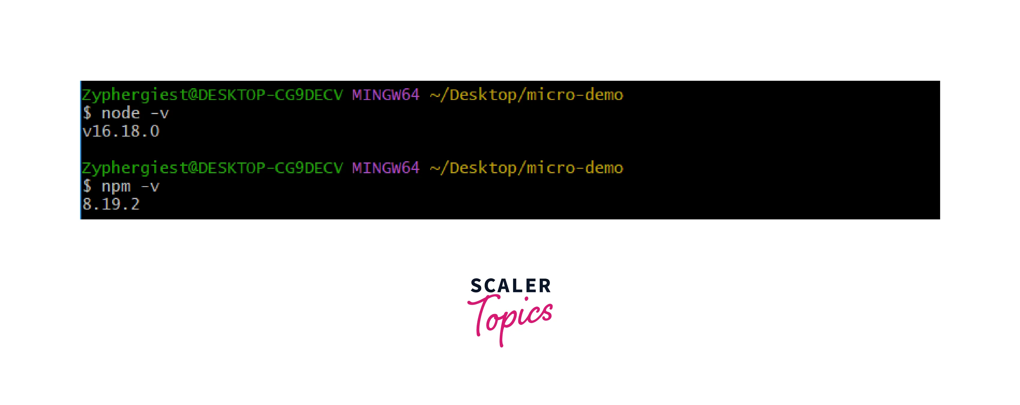 If they are not installed, we should visit the Node.js website to download and install them. Now we will initialize our Node Application. Run the following command and go through the terminal prompts
