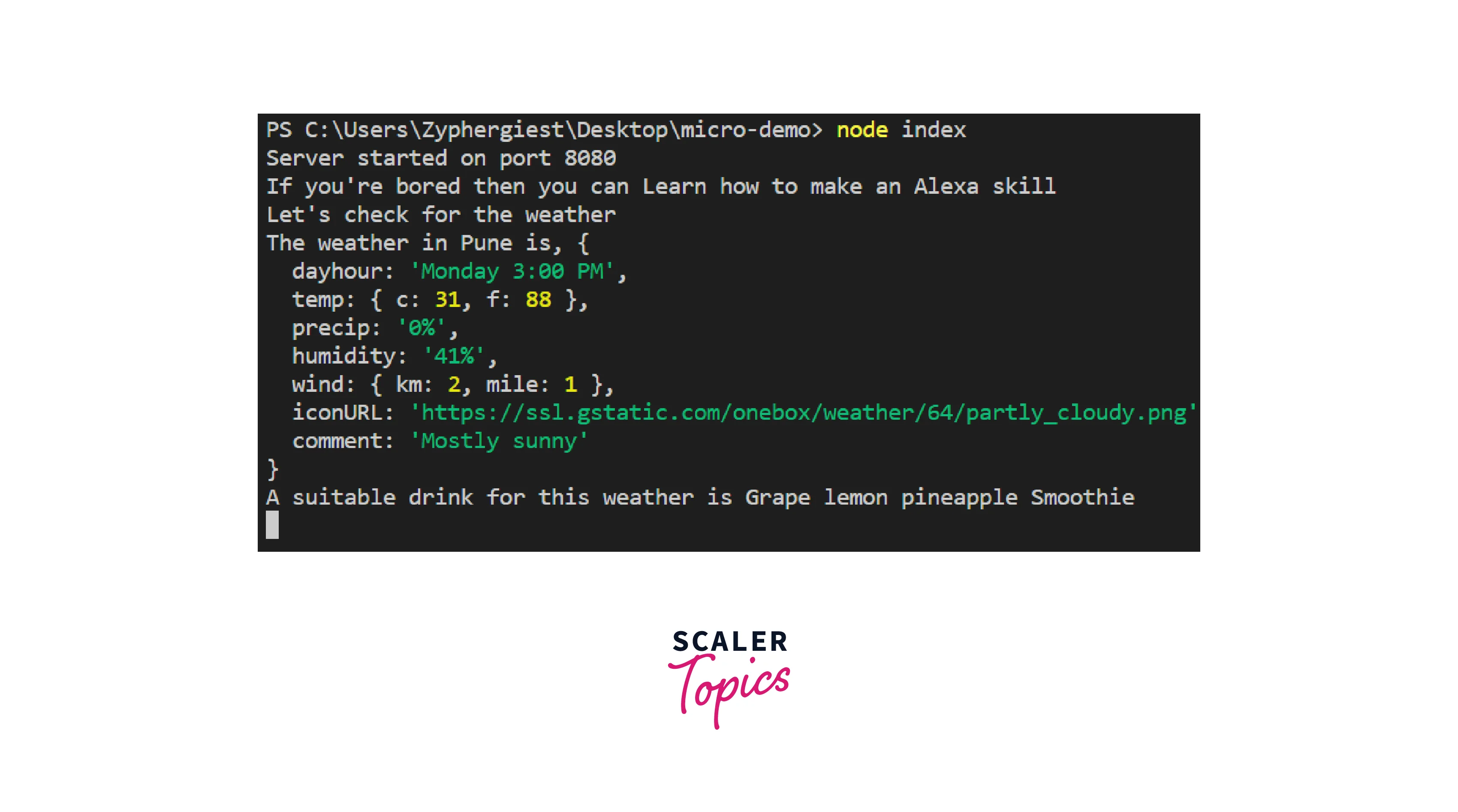 We will code a simple Node.js back end using ExpressJS and try to get data from all three of the above Microservices and log it to the console. Here is the code for that: