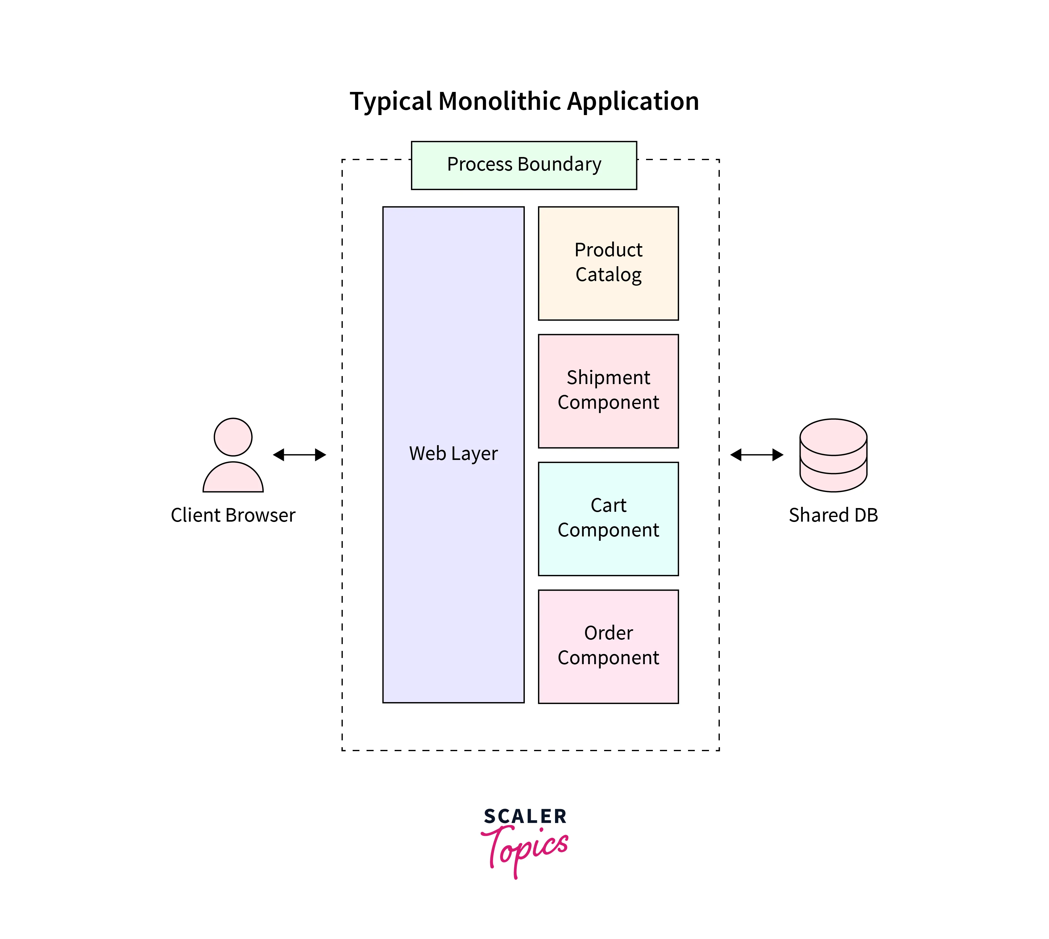 Back in the day, around the 1990s, companies offering internet services would run a large Monolithic Application on an in-house server. A Monolithic Standard meant that all the components of the application were part of a single unit of code. For Eg, if it was a Library Management System then all services like User Authentication and Authorization, Inventory Management, Books list, Book issue data, etc. were part of the same codebase.