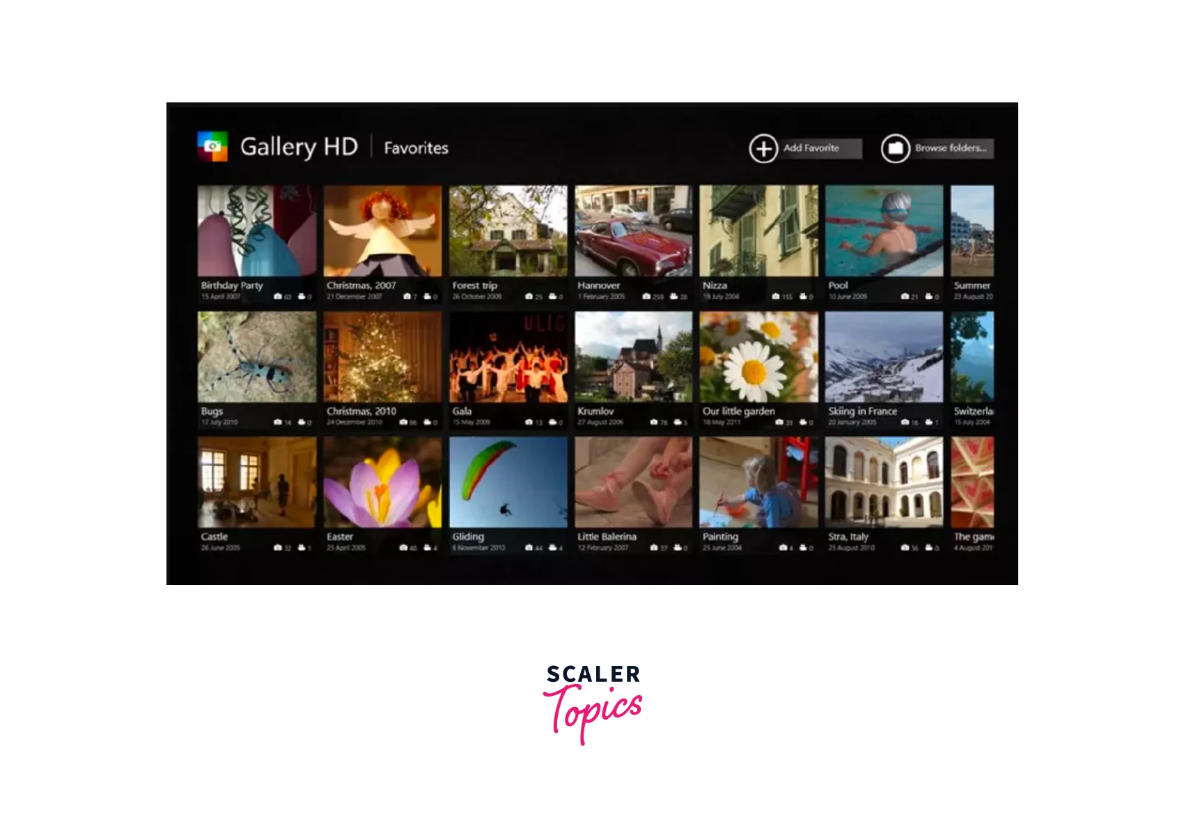 We can make node js projects to display the photo gallery of an individual. We can use Node.js at the back end for a server that can fetch photos from an image file hosting database or server and then using HTML and CSS, we can display these images. With JavaScript, we can add functionality where we only need to create a display template for a single image and then use the same template for every image.