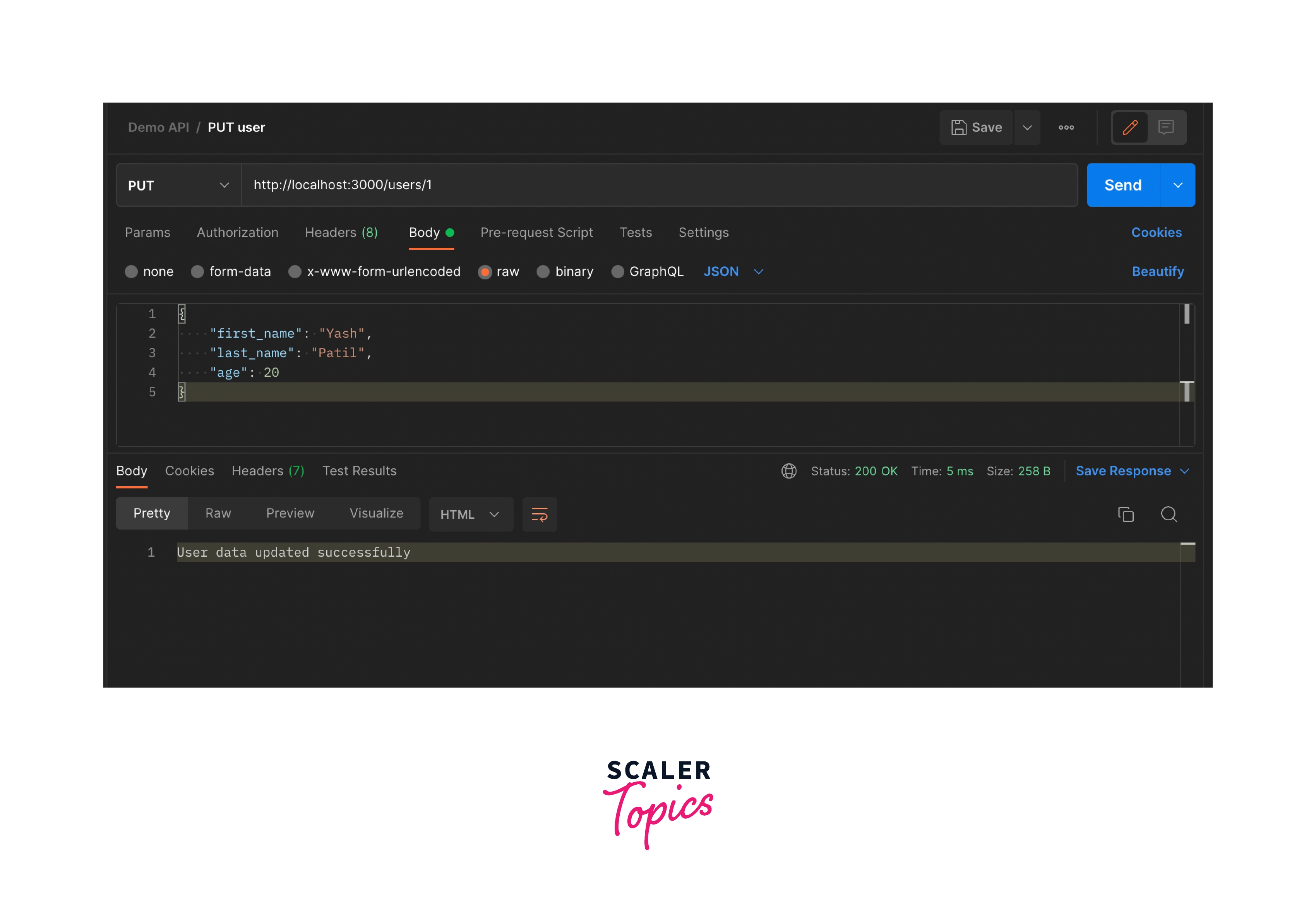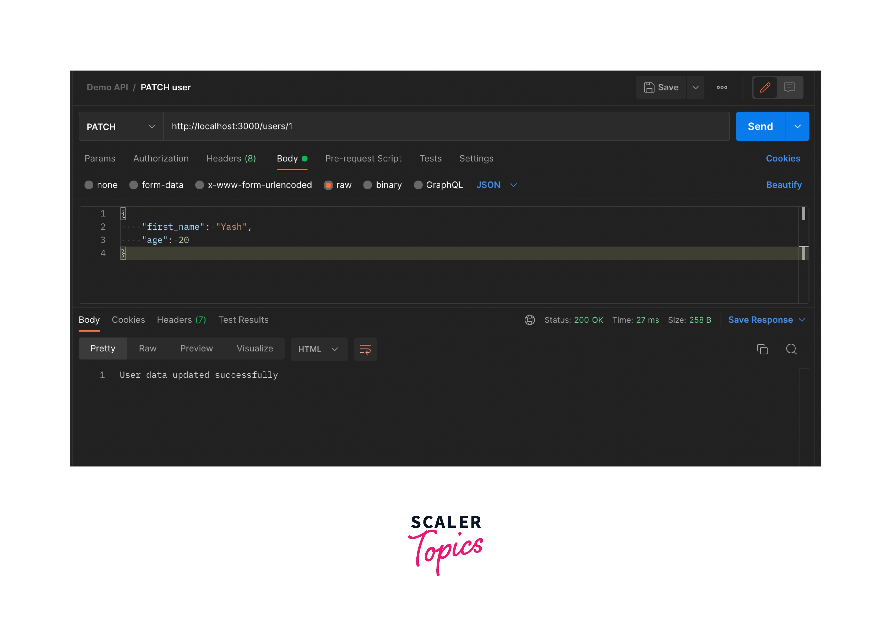 Step 7: Updating the First Name and Age of a User Using the PATCH Method