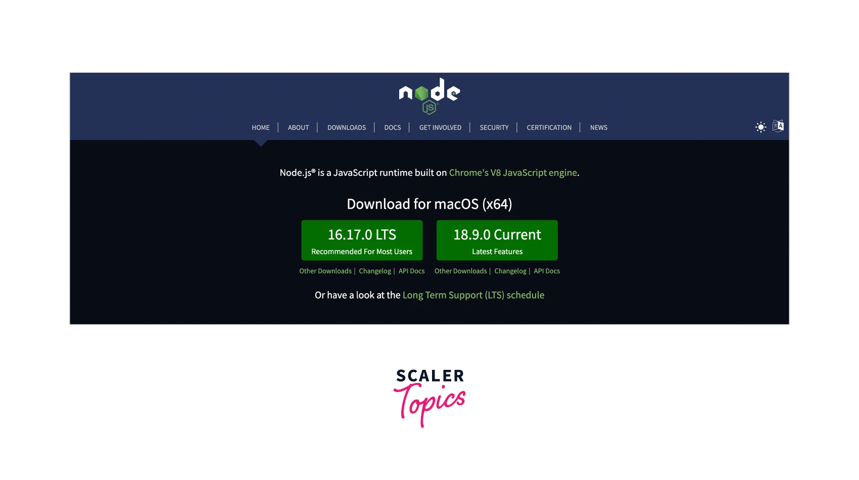Go to NodeJS's official website, which will automatically detect your OS and show the installer which is supported by your OS. NodeJS is updated frequently with new features and performance improvements, but it may be unstable due to frequent updates. Hence, it is always recommended to use the latest LTS(Long-Term Support) version as it is more stable and reliable.