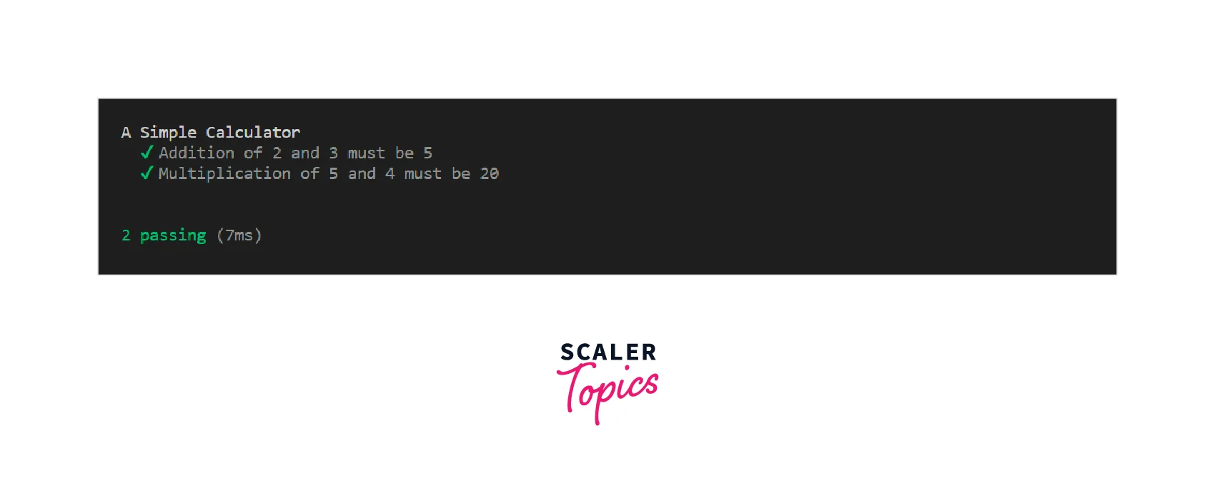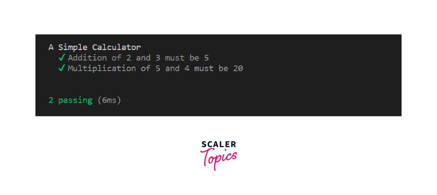 Note: Chai is an assertion library and not a test runner. therefore, we used mocha to run tests for the above code.