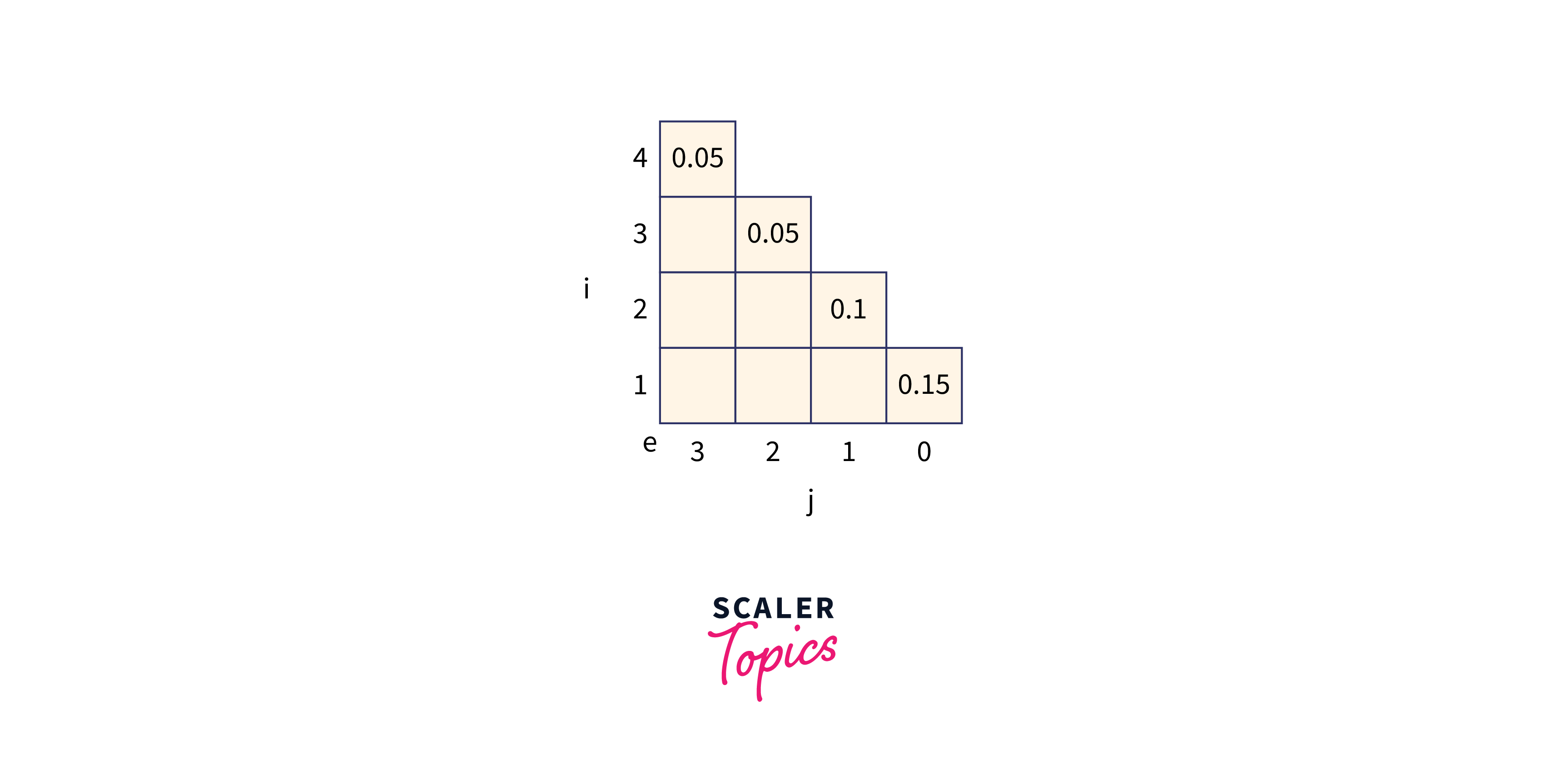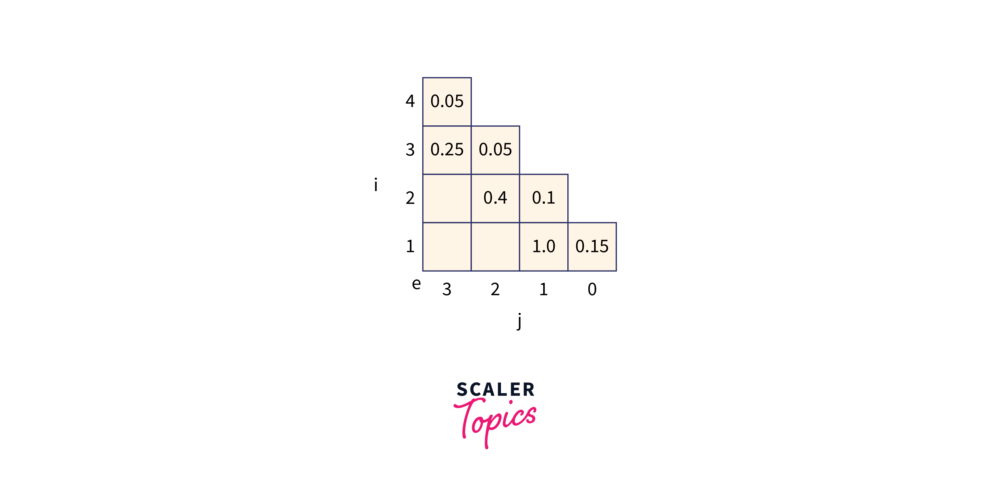 - The base case occurs when j = i – 1, because we just have the dummy key di-1 for this case. For this case, the expected search cost is e [i, j] = e [i, i - 1] = qi-1.
