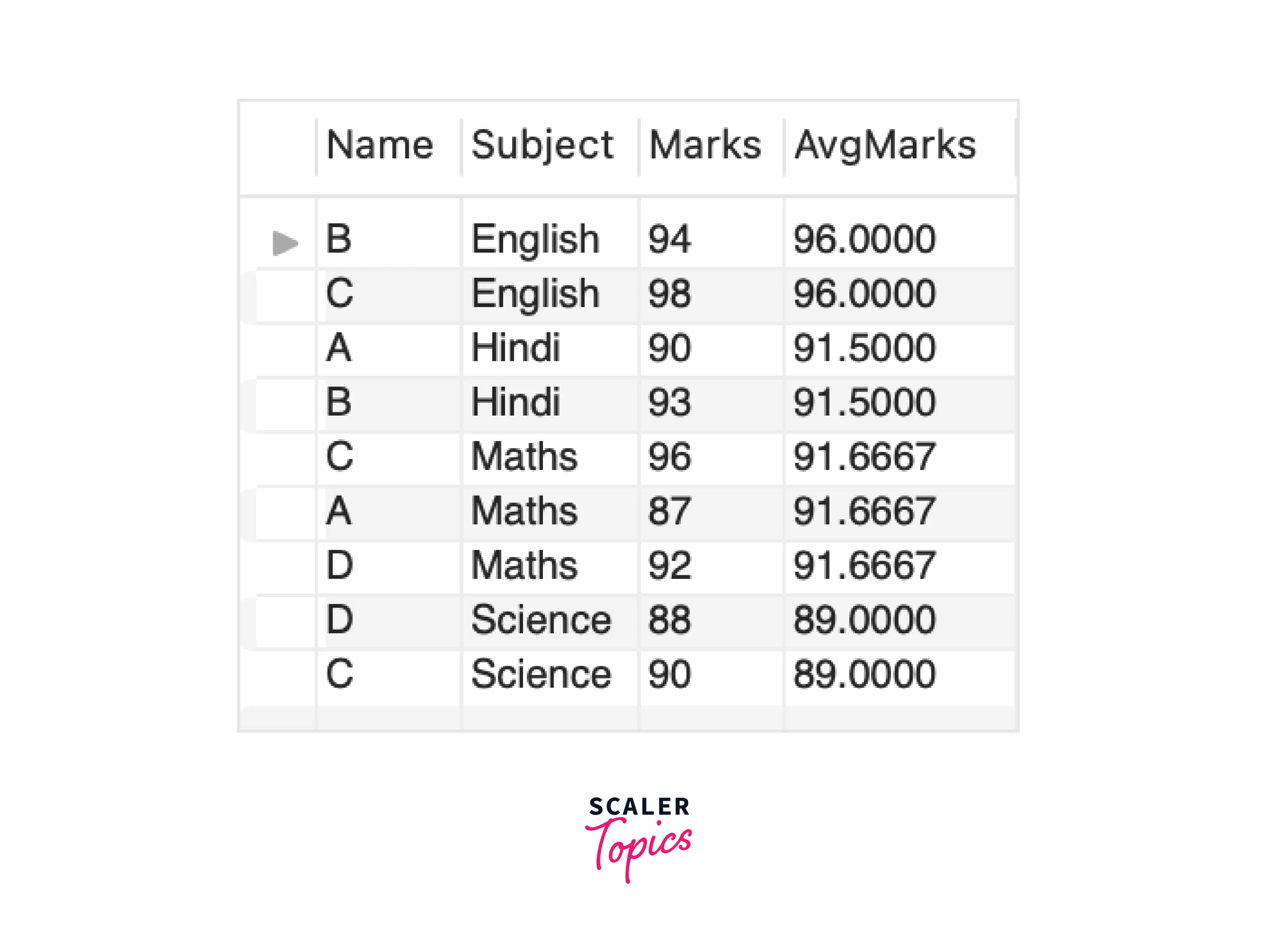 As a result, PARTITION BY has calculated the average marks for the students where each window is made on the Subject.