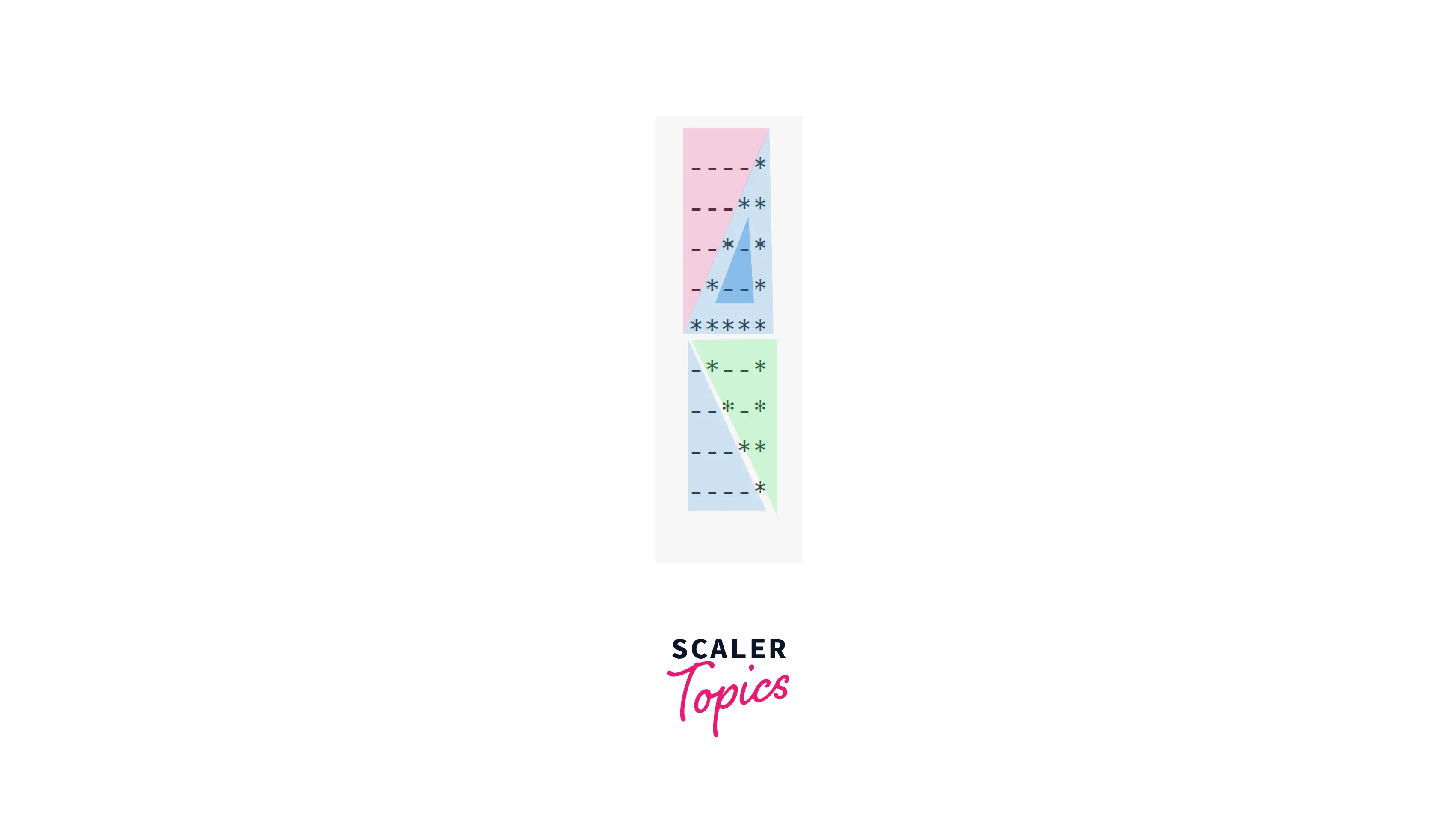 Since we don't have to print these 2 patterns side by side, and instead, we need to print it one after the other, we can use 2 nested loops. Nested Loop 1 for 1st triangle, similar to Example 1, of size n.