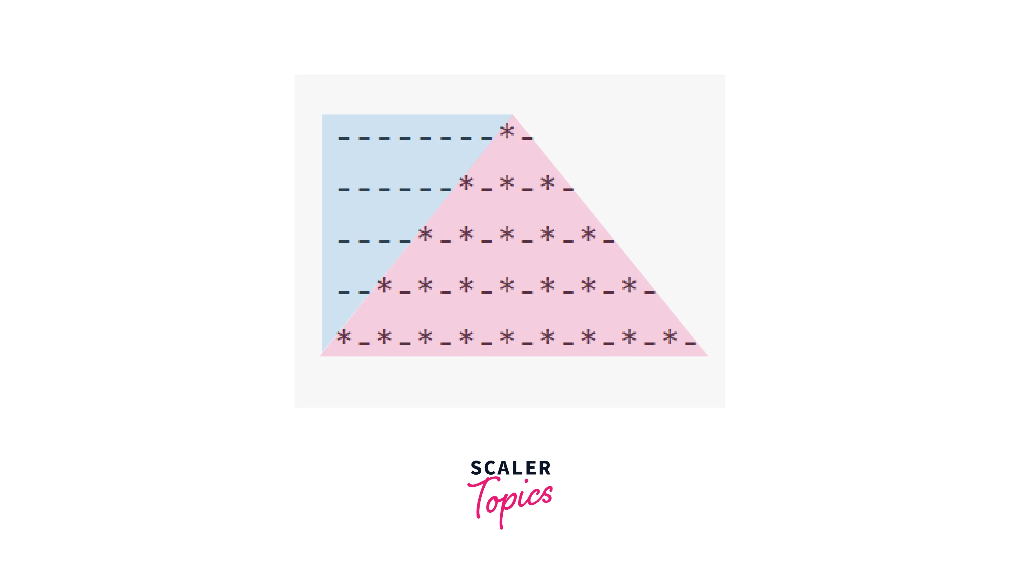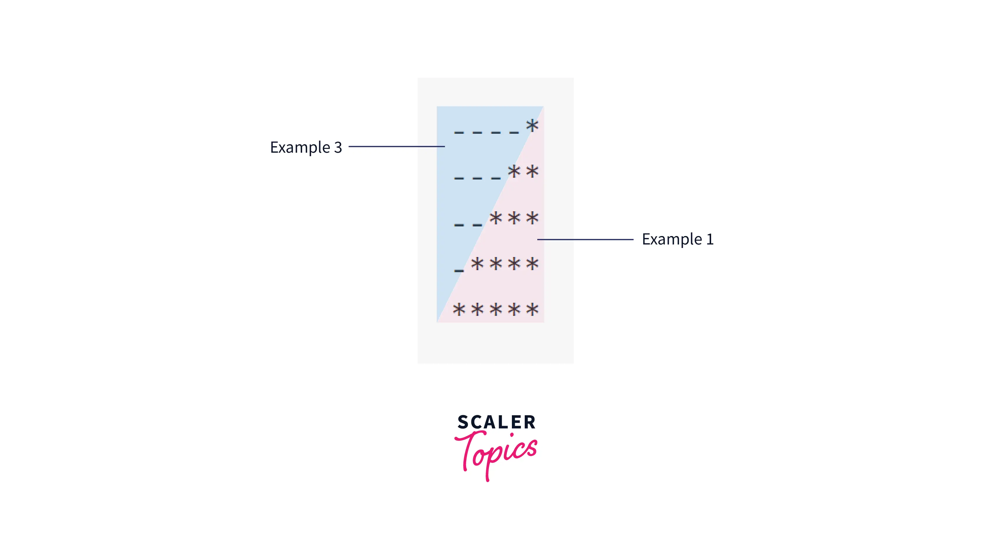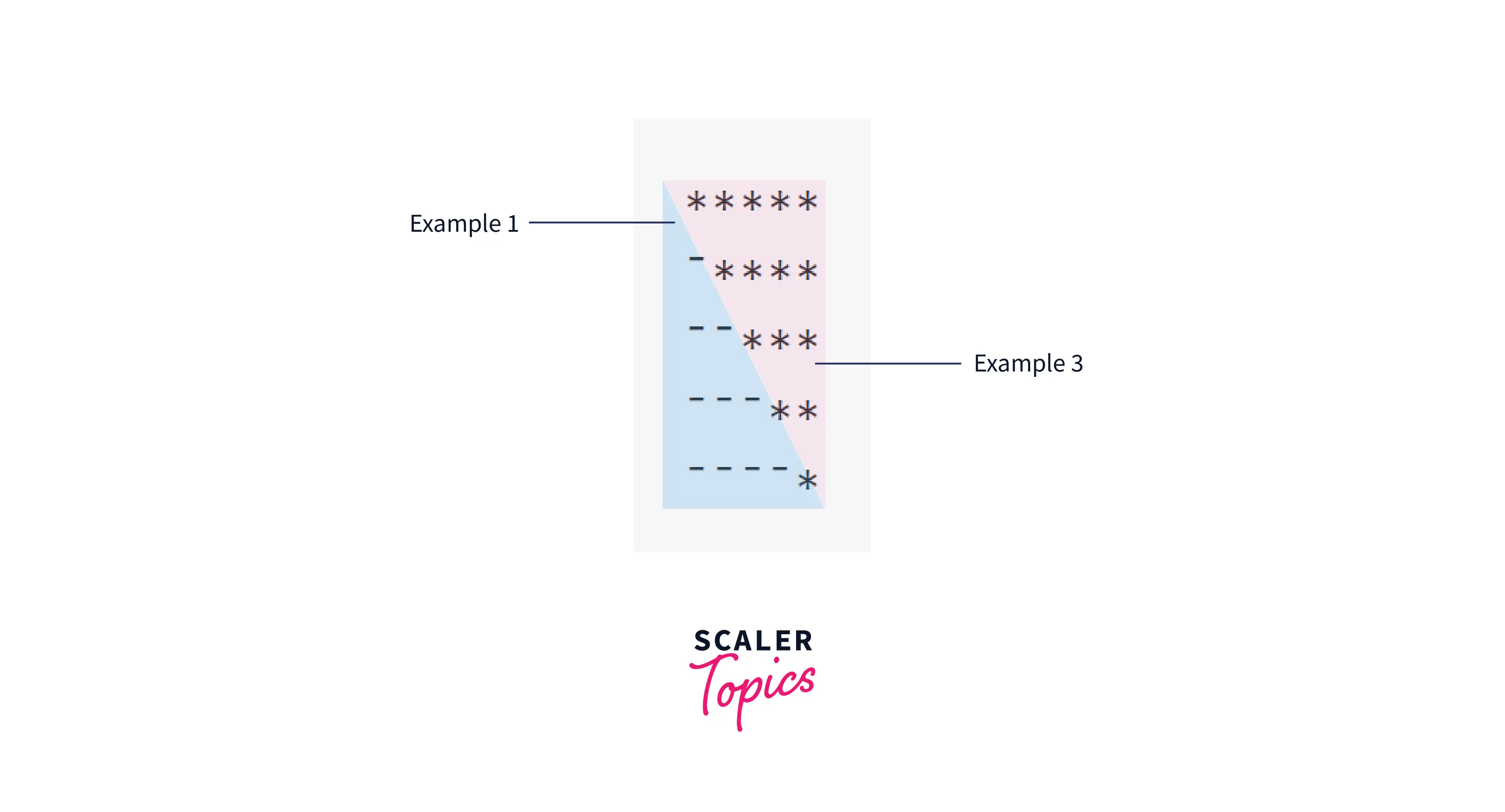 This pattern looks similar to Example 3 in terms of the number of stars in each row. The difference is the space part. We need to print the space triangle as well.