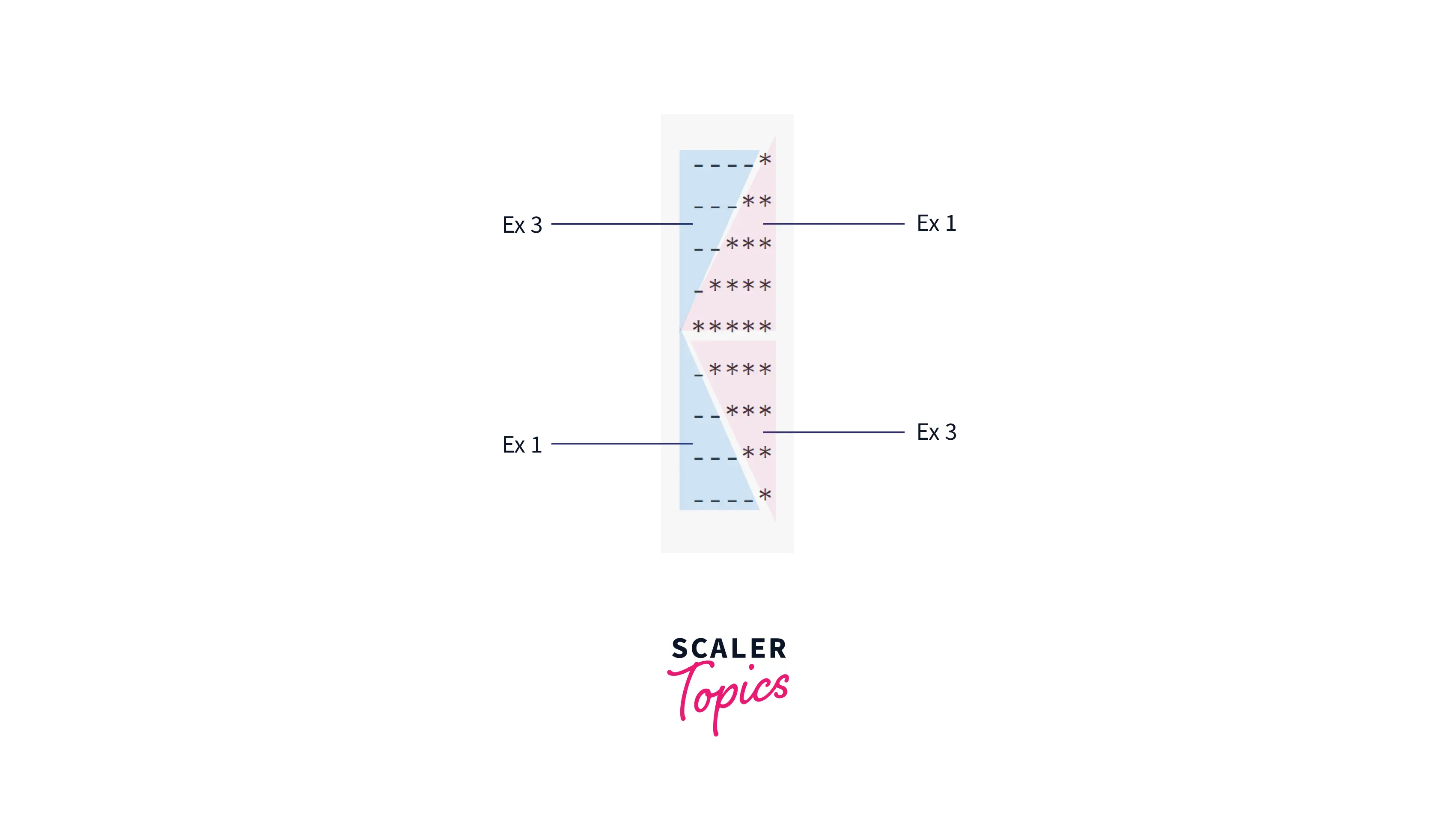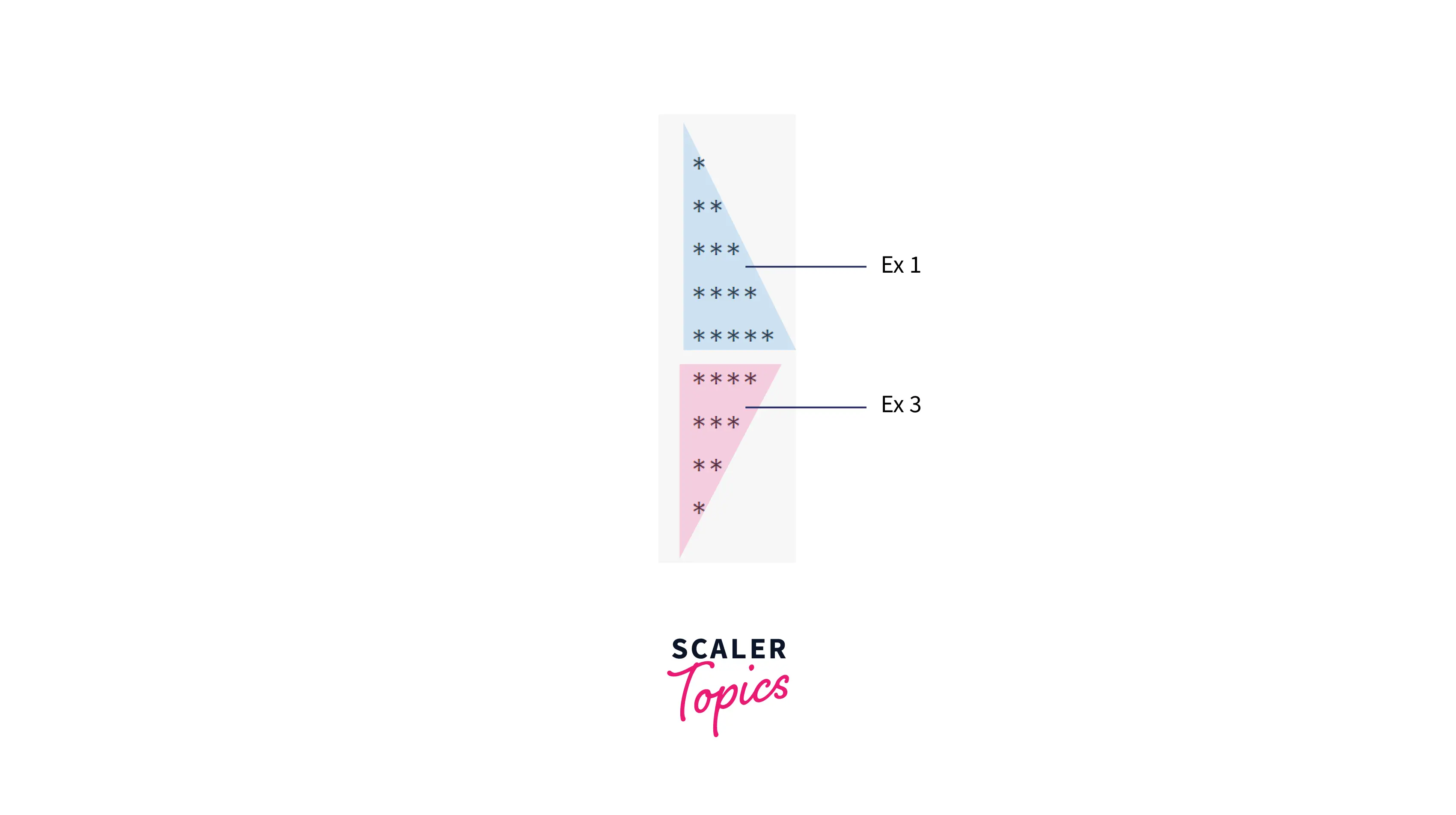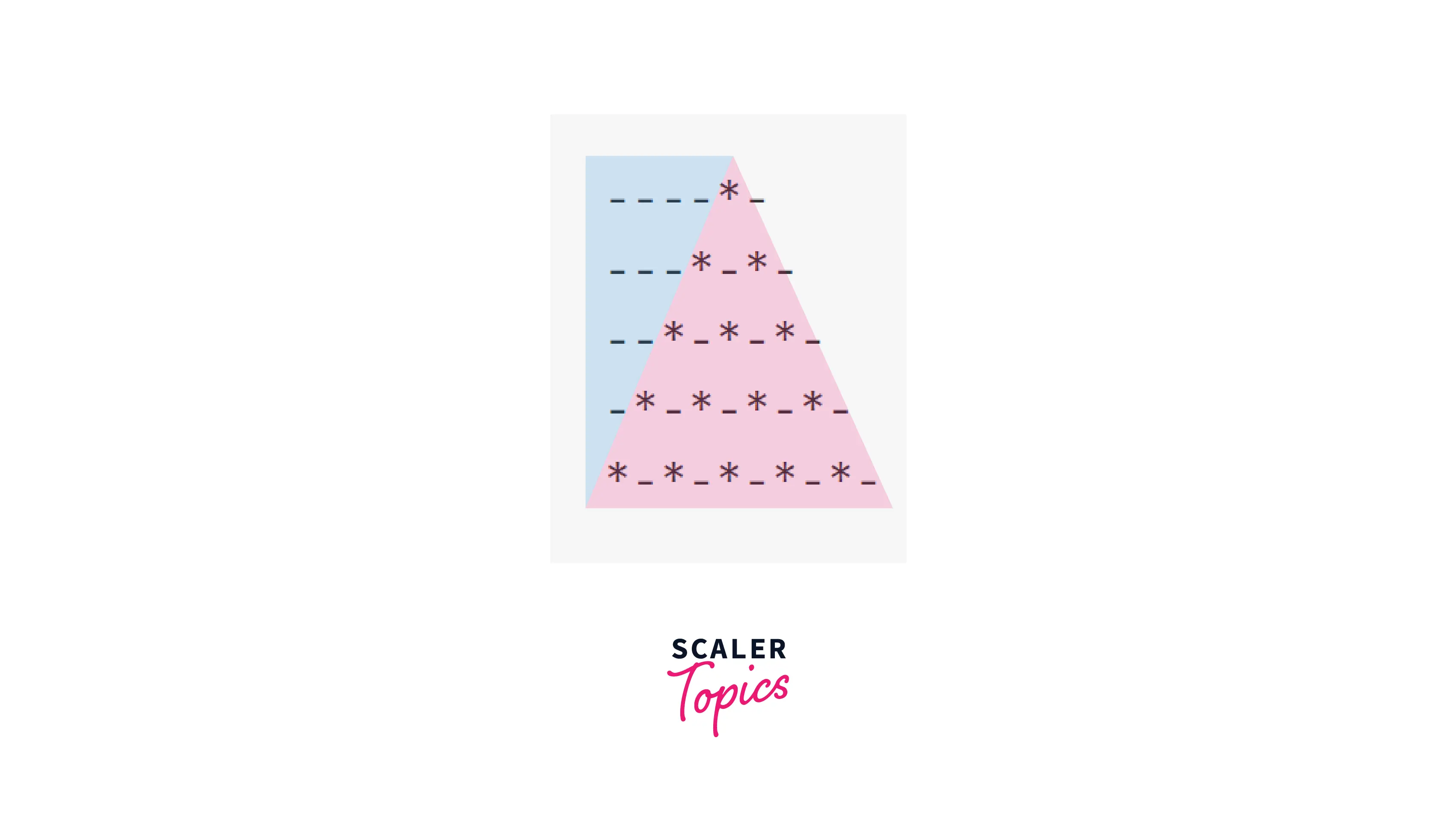 This pattern looks similar to Example 3 in terms of the number of stars in each row. The difference is the space part. We need to print the space triangle as well.