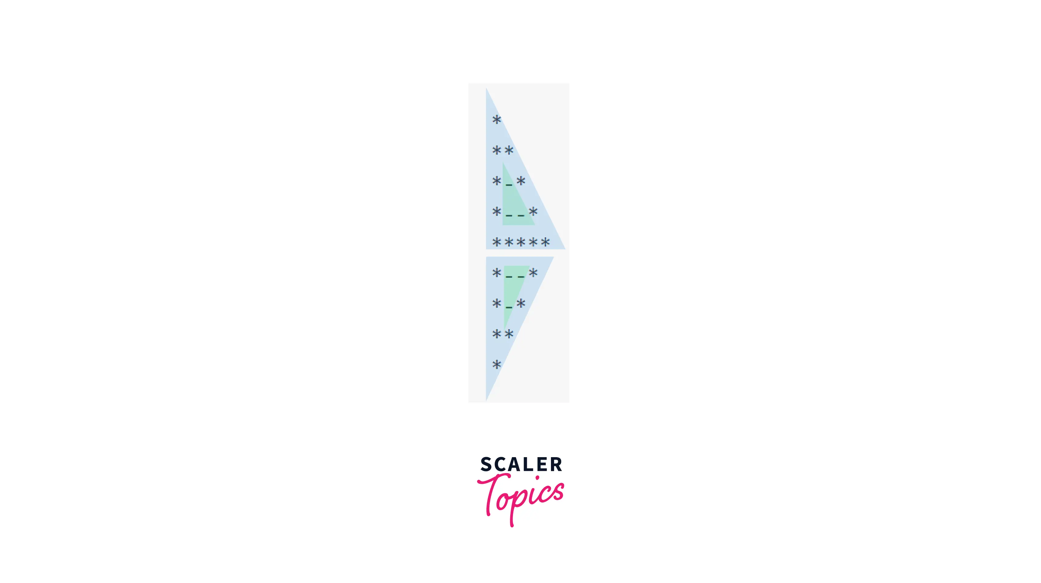 Explanation: We can just reverse the outer loop and it will do the trick. We can also divide it into 2 triangles. Since we want to print them side by side, we will use only 1 outer loop.