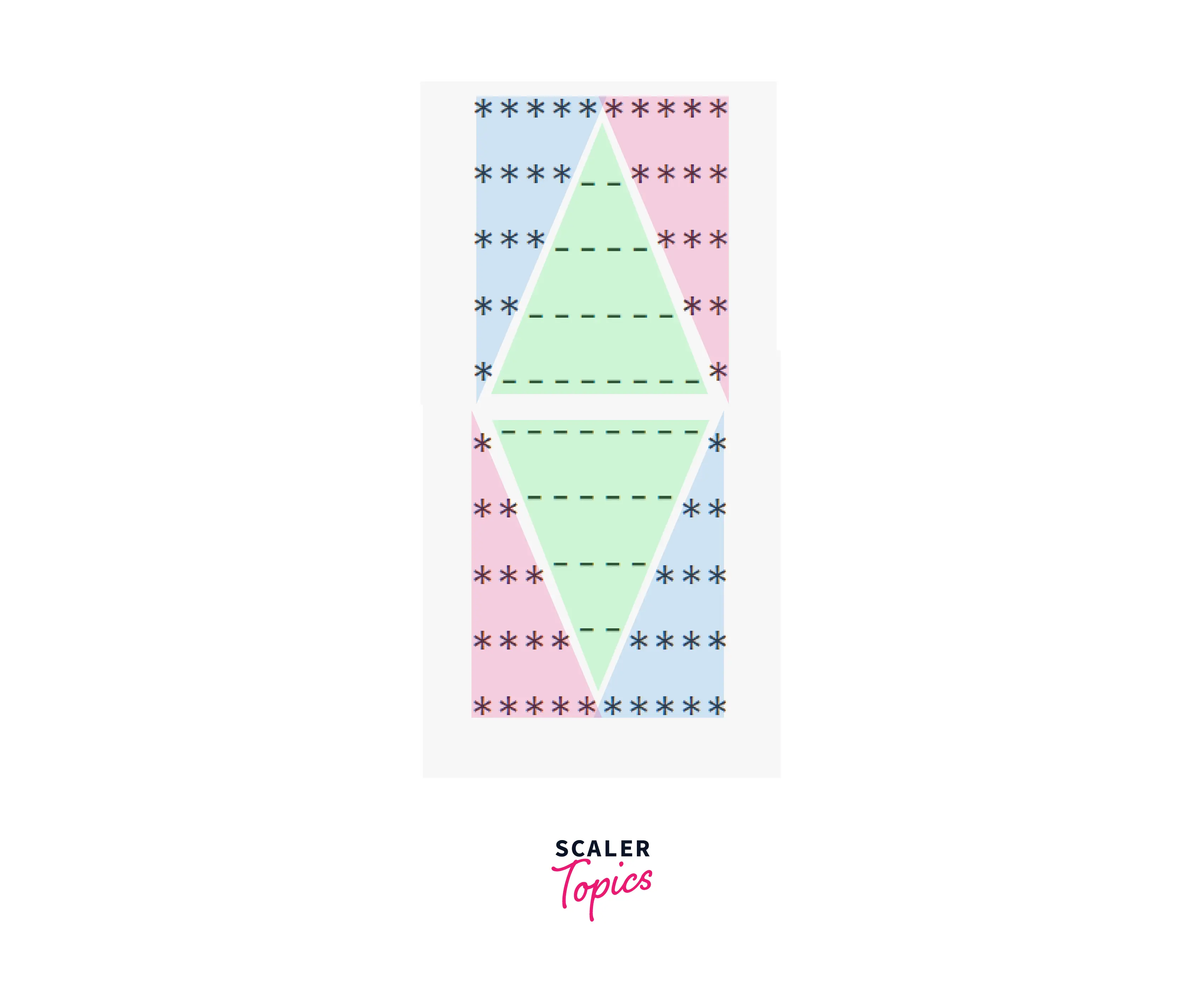 Since the space triangles and the pattern are side by side, we don't have to make separate nested loops, we will club into the 2 nested loops used for the upper and lower halves.