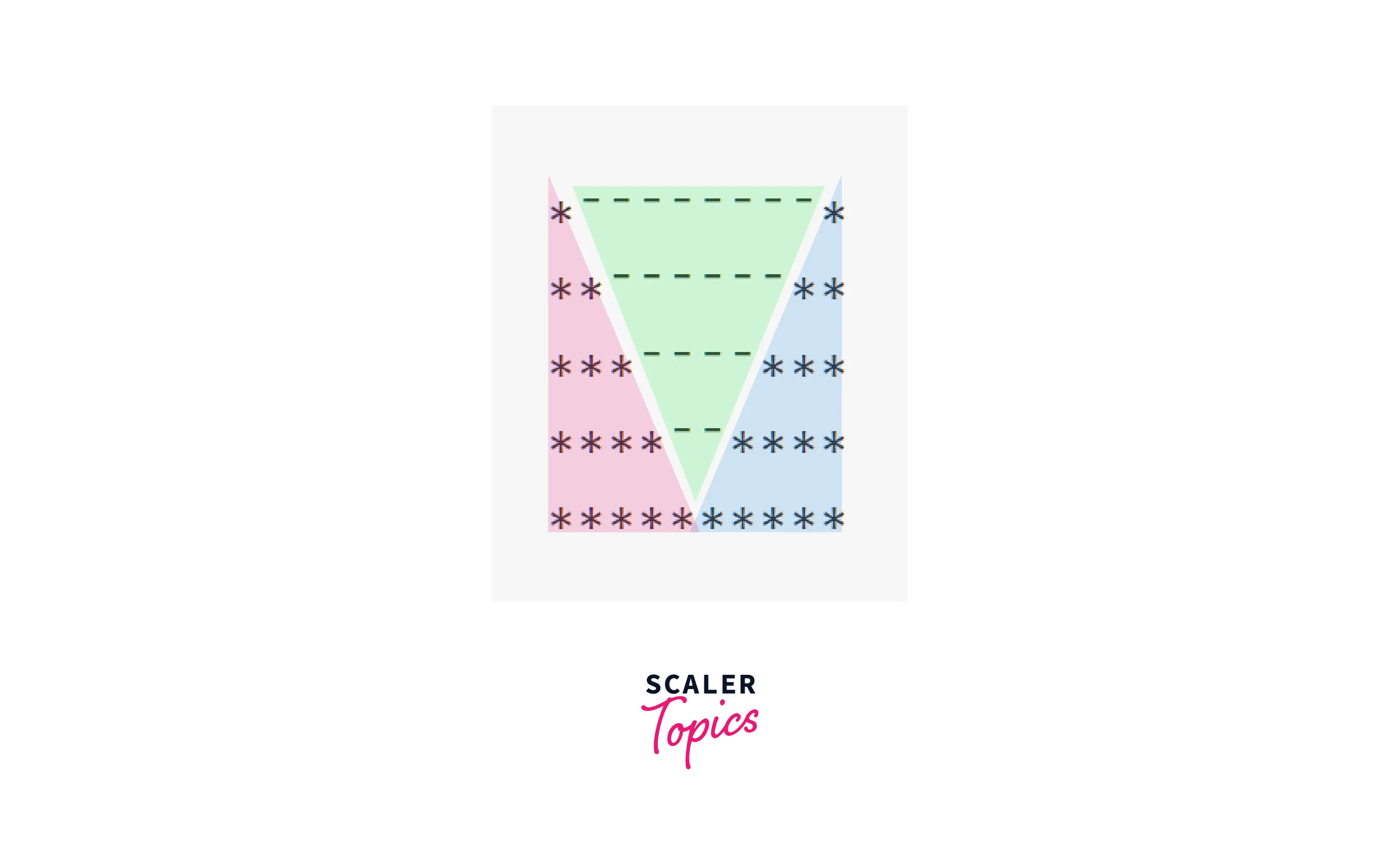 Observation: This pattern is very similar to Example 1. The difference is the space part. We need to print the space triangle as well. To deal with spaces, let's first replace them with '-'.
