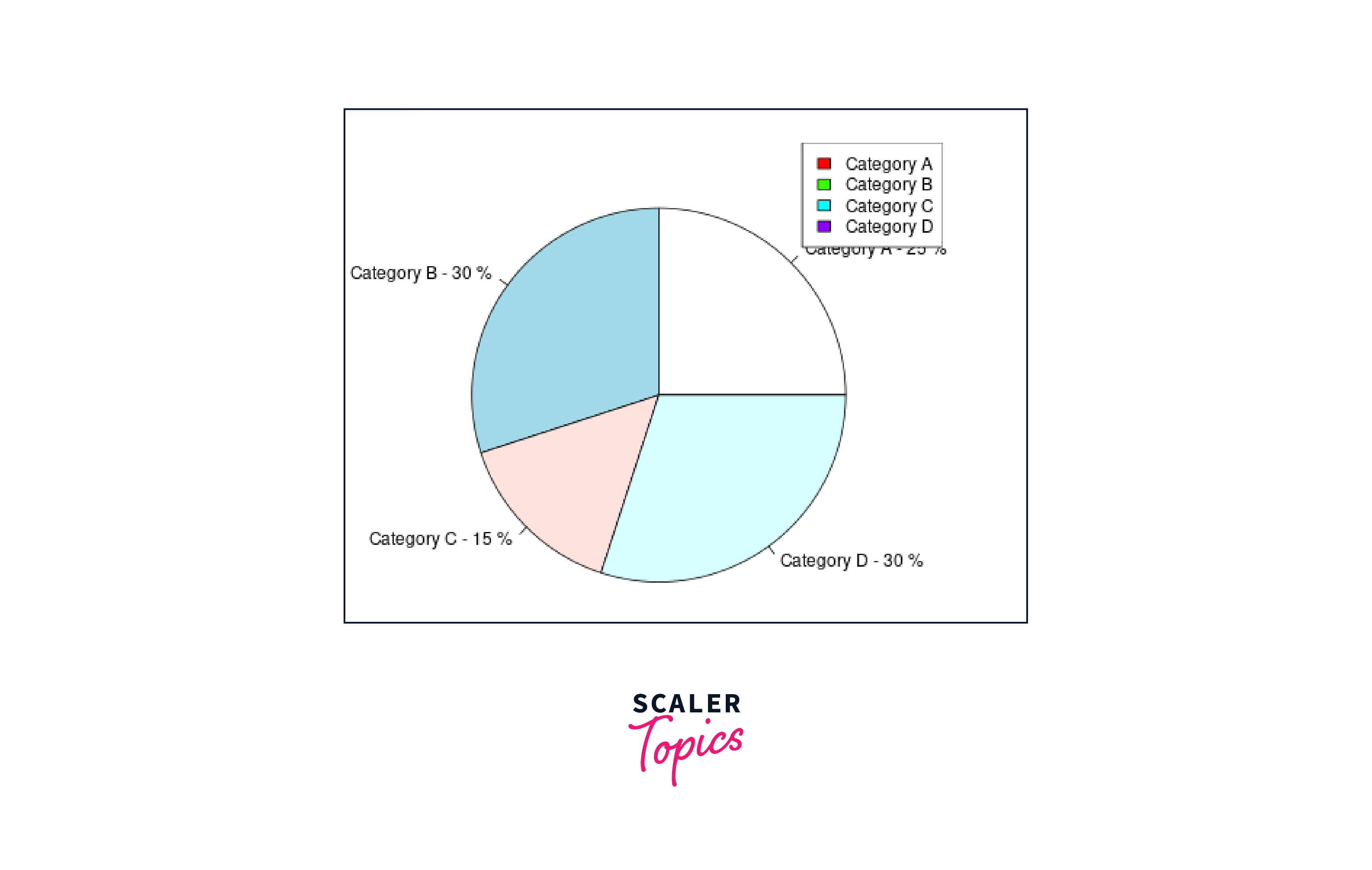 The pie chart is produced in a clockwise orientation from the provided data. Different colour slices are automatically added. Pastel colours are the default. However, the graph does not provide much information. Let us now add a title and a colour.