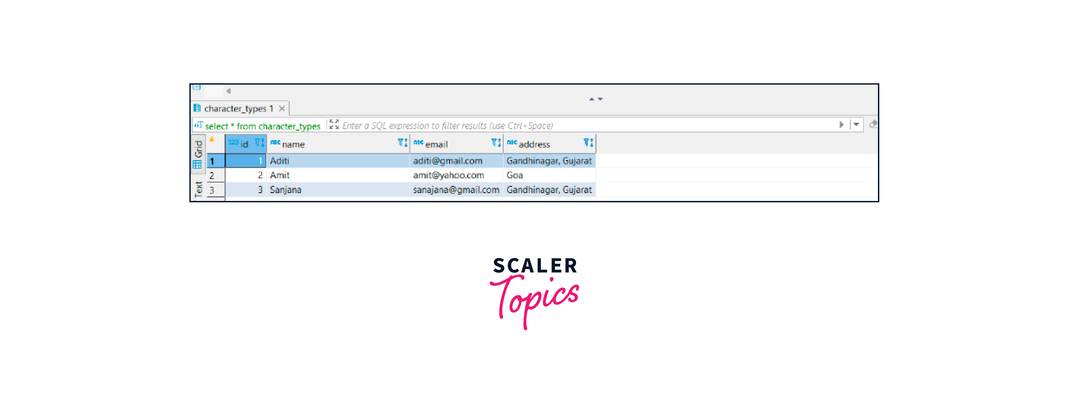 For example, you are storing the names of customers in a database table. Then, you can use the character varying data type i.e., varchar to accommodate varying lengths of names.