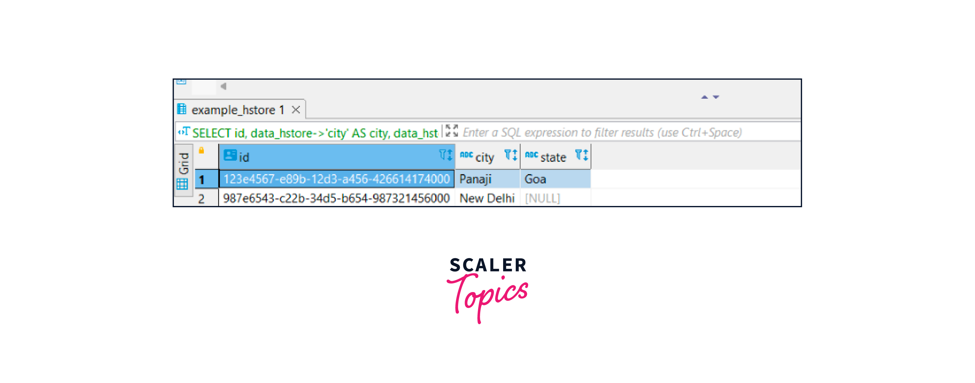 But before creating the table example_hstore, run the following command to see if the hstore extension is installed in your database:-