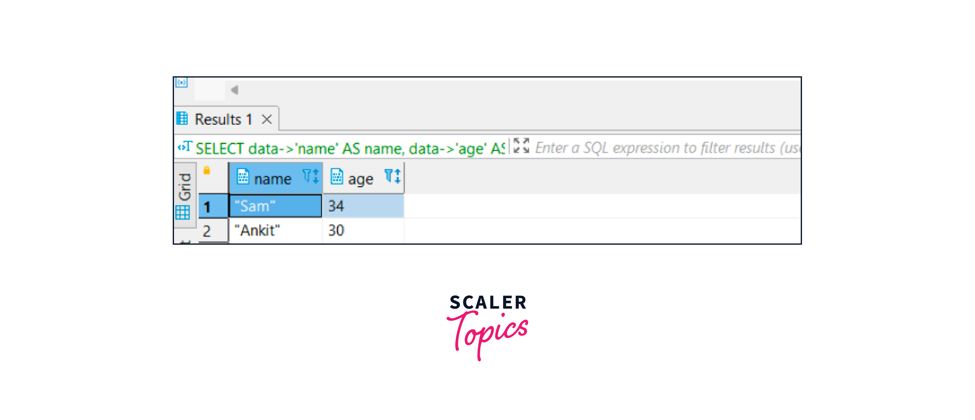 In this example, we are creating a table named example_json. The table consists of two columns: id and data. The data column is defined as JSON.