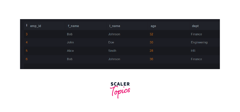 Considering the above case, we will insert the data in the employee's table and also return the table in the console with the help of the below insert statement.