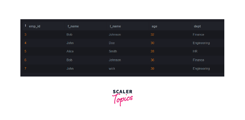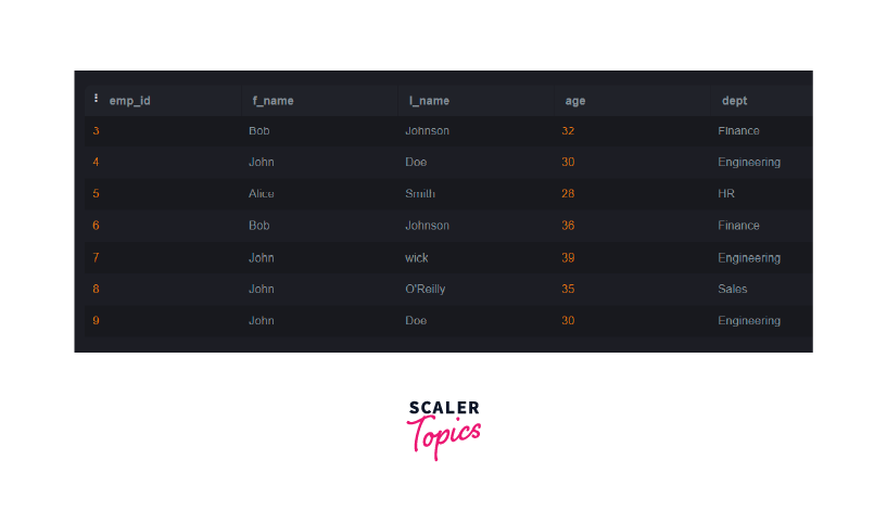 We will be using the above-created employee's table to insert multiple rows into the table at once as: