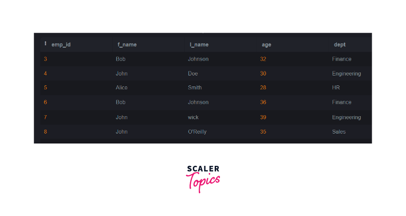 In this case, we are inserting a character string with a single quote. After executing the above query, the below output will be generated: