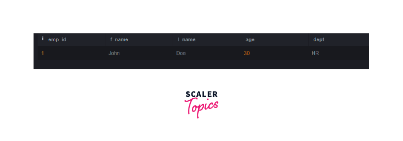 In this example, the data for the f_name, l_name, age, and dept columns are provided within the VALUES clause, and PostgreSQL will insert this single row into the employees table.