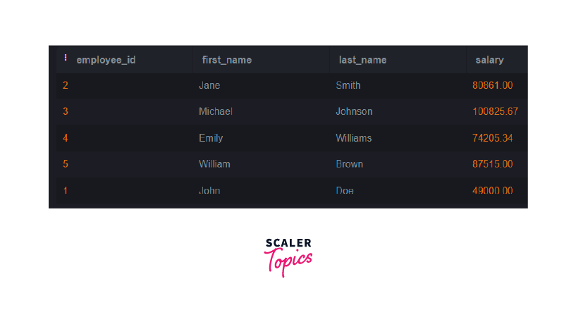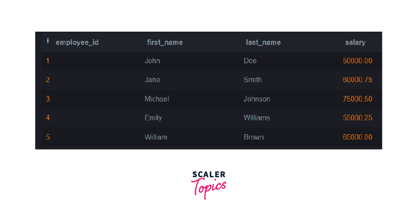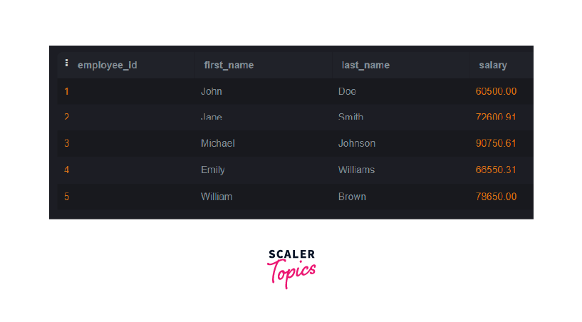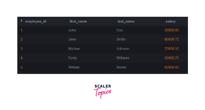 Let’s consider the above-created employees table. Let's assume we want to update the Postgresql query of the table employees with new salaries from the salary_updates table for matching employee IDs.