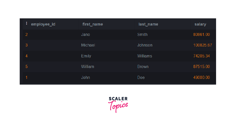 Now, If we want to update the salary of an employee with a specific ID, we would use the UPDATE query as follows:
