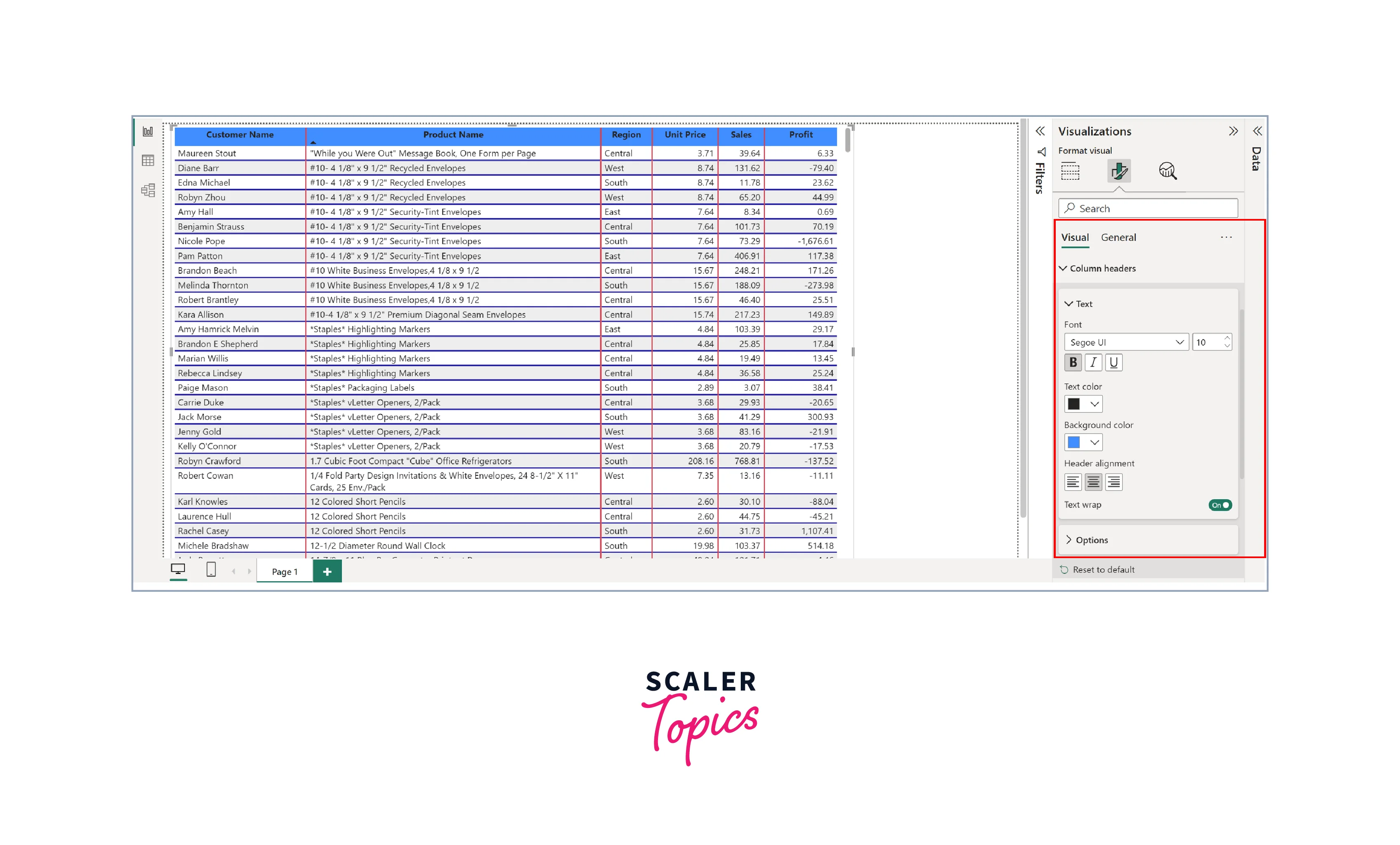 Format Column Headers of a Table in Power BI