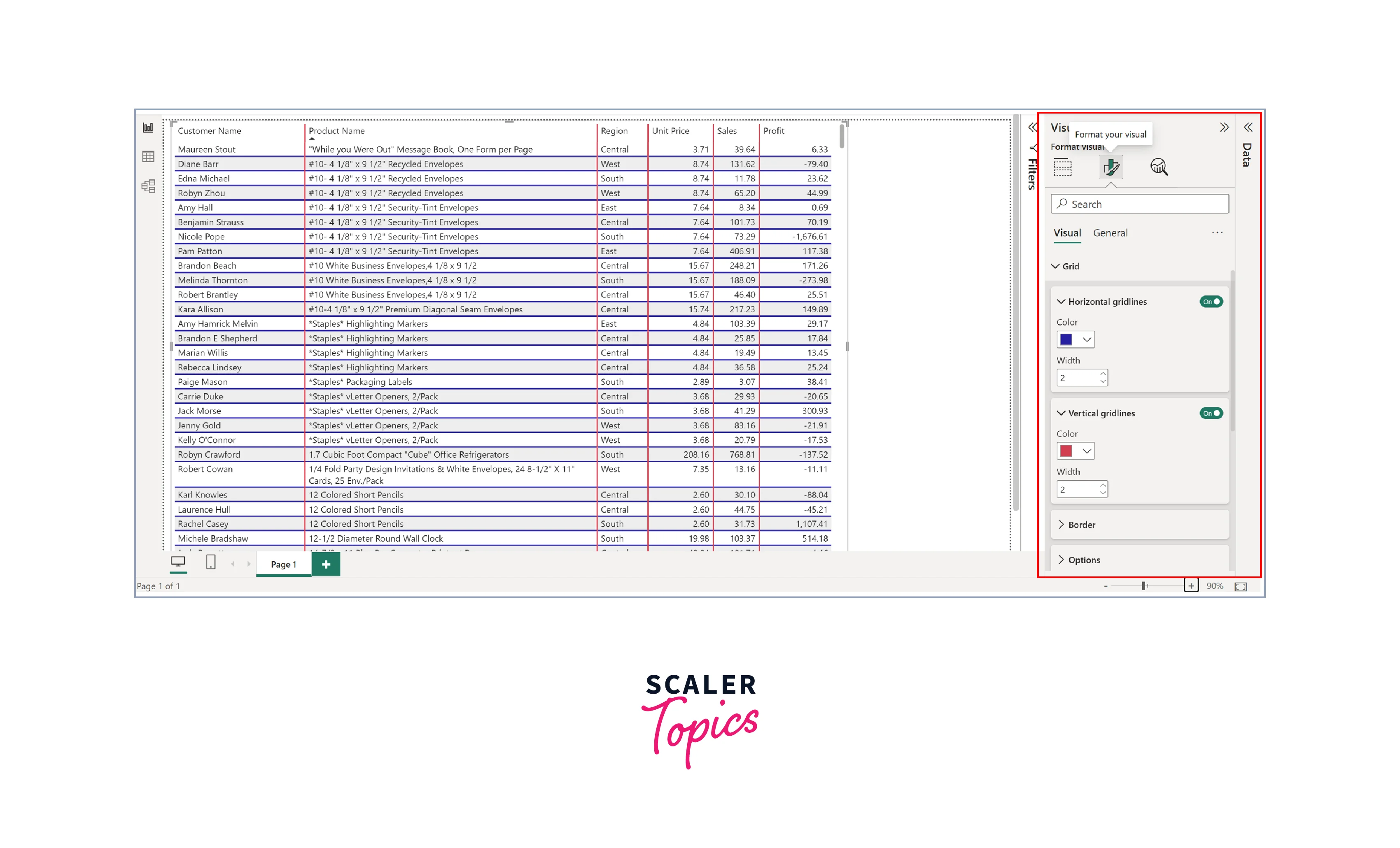 | Format Grid of a Table in Power BI | This option allows you to format the gridlines of the table to improve readability. |