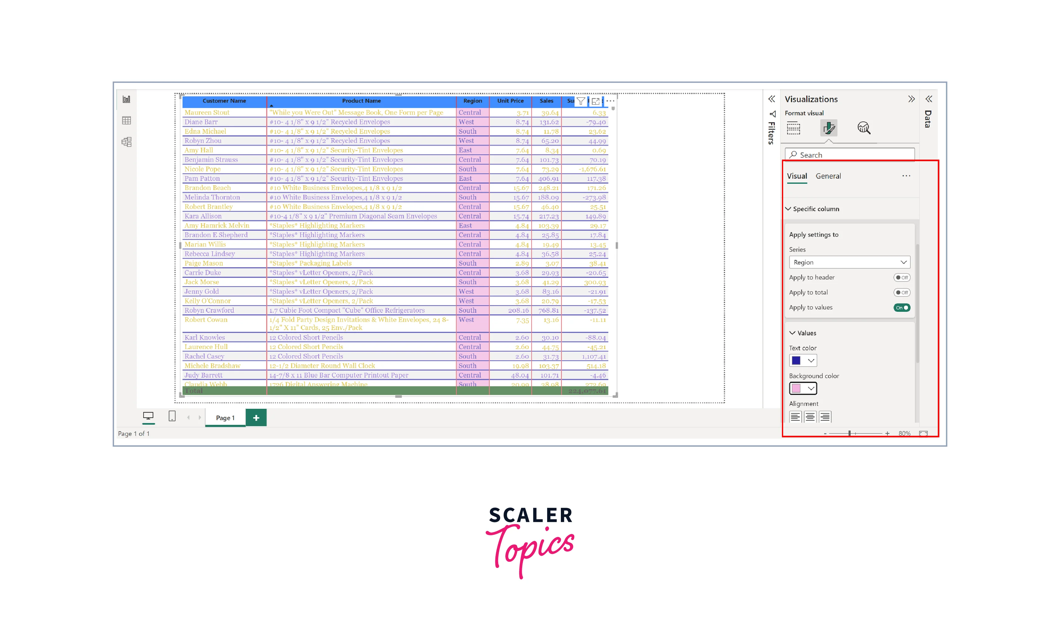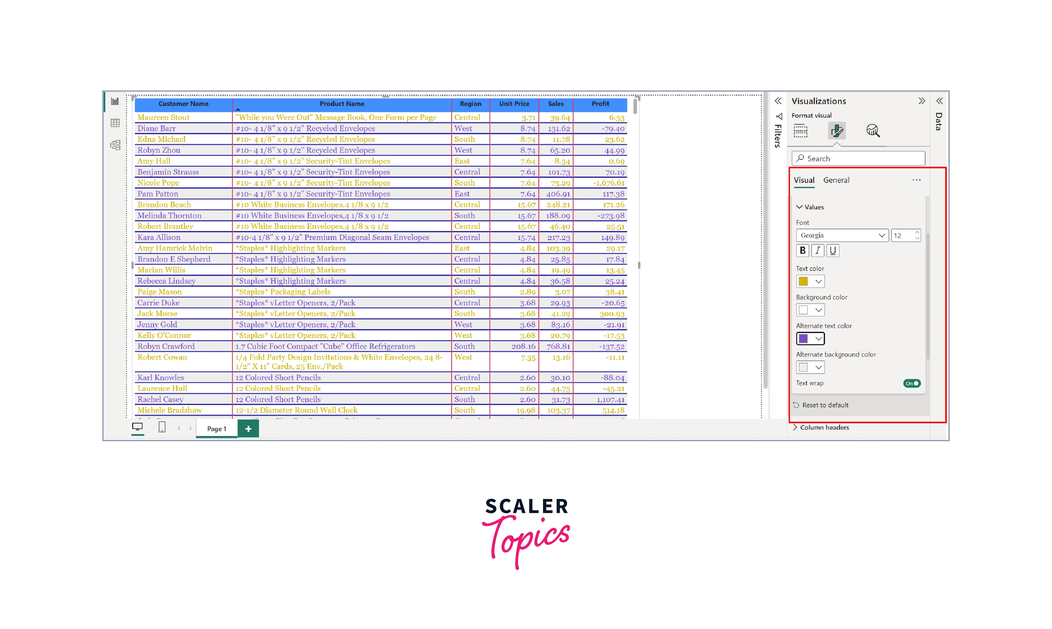 This section empowers you to customize the appearance of table values in Power BI. You can create a visually appealing contrast with the ability to change font and background colors for even and odd rows, as shown in the below figure.