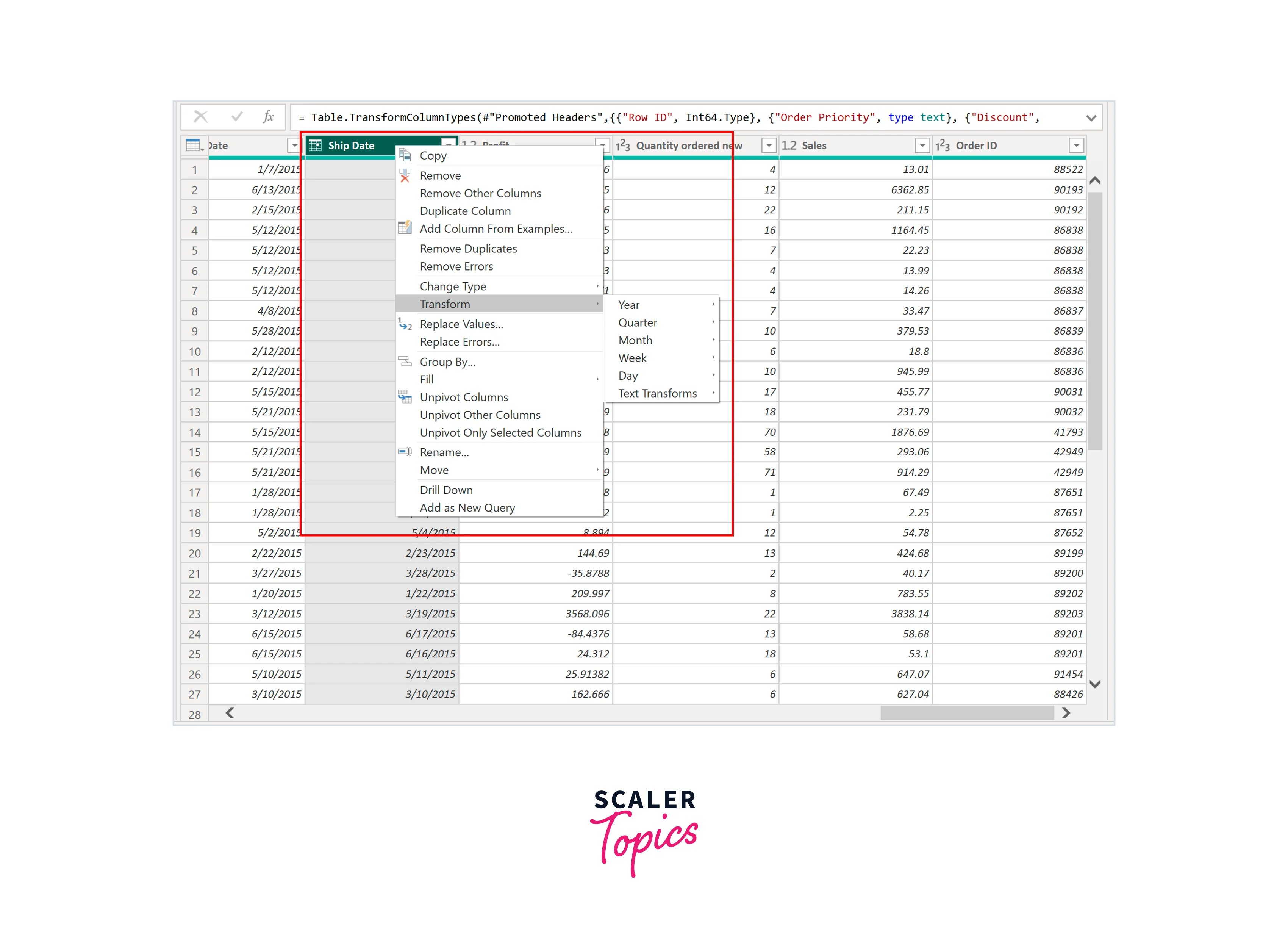 - Right-click on the selected column and navigate to the "Transform" menu. You'll find "Date" or "Time" formatting options here.