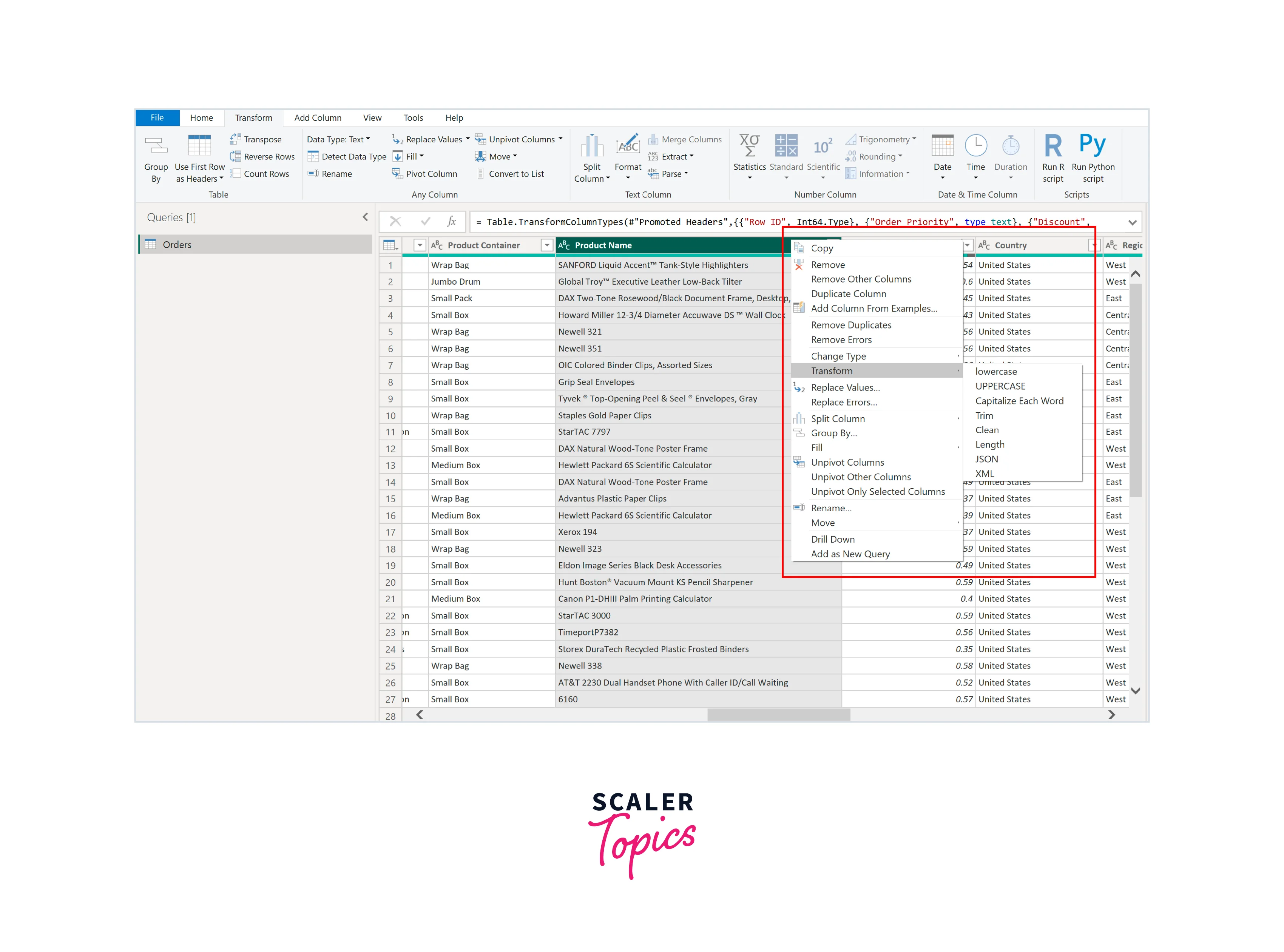 - In Power Query Editor, choose the column containing text or string data that requires formatting.