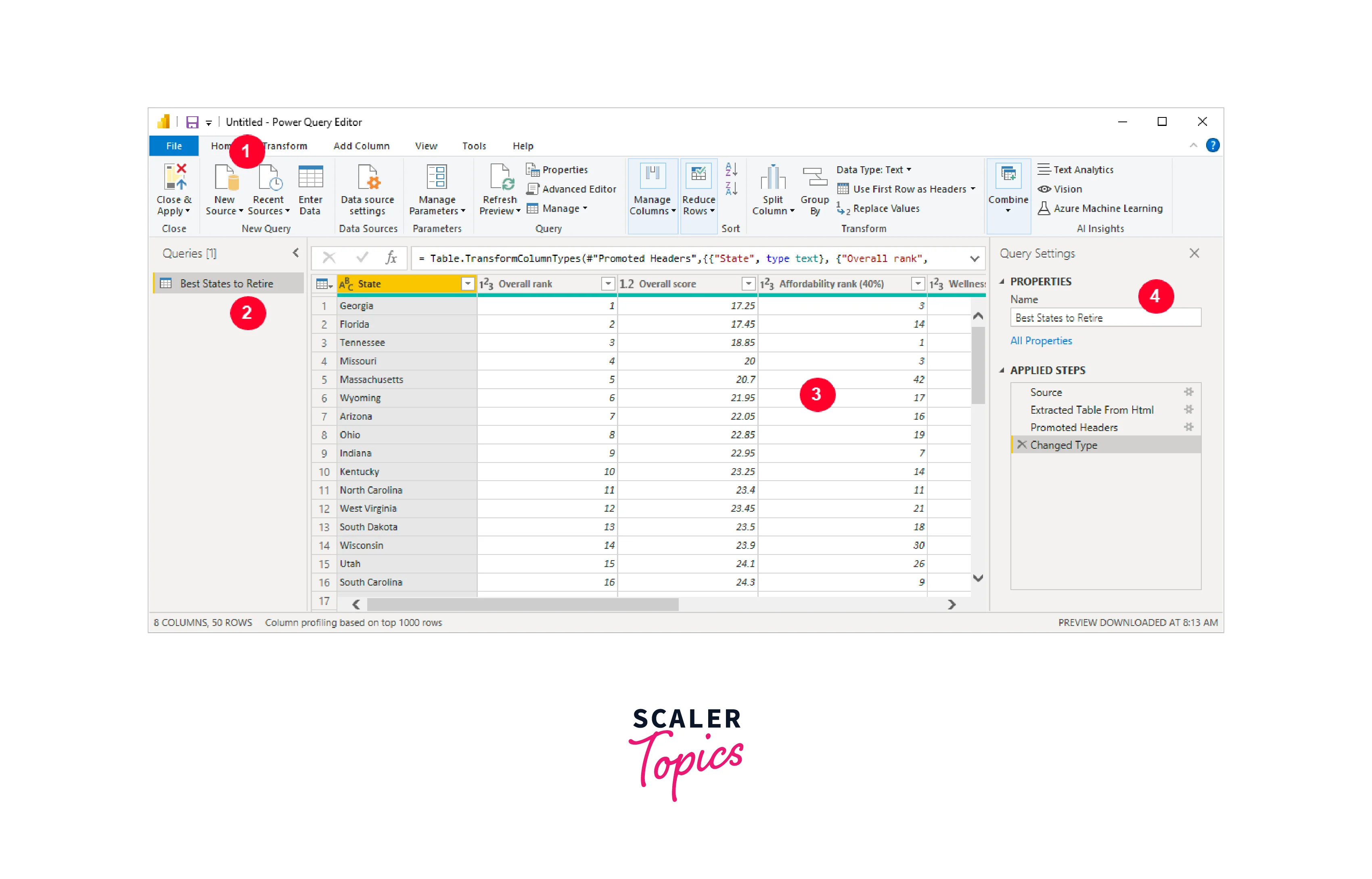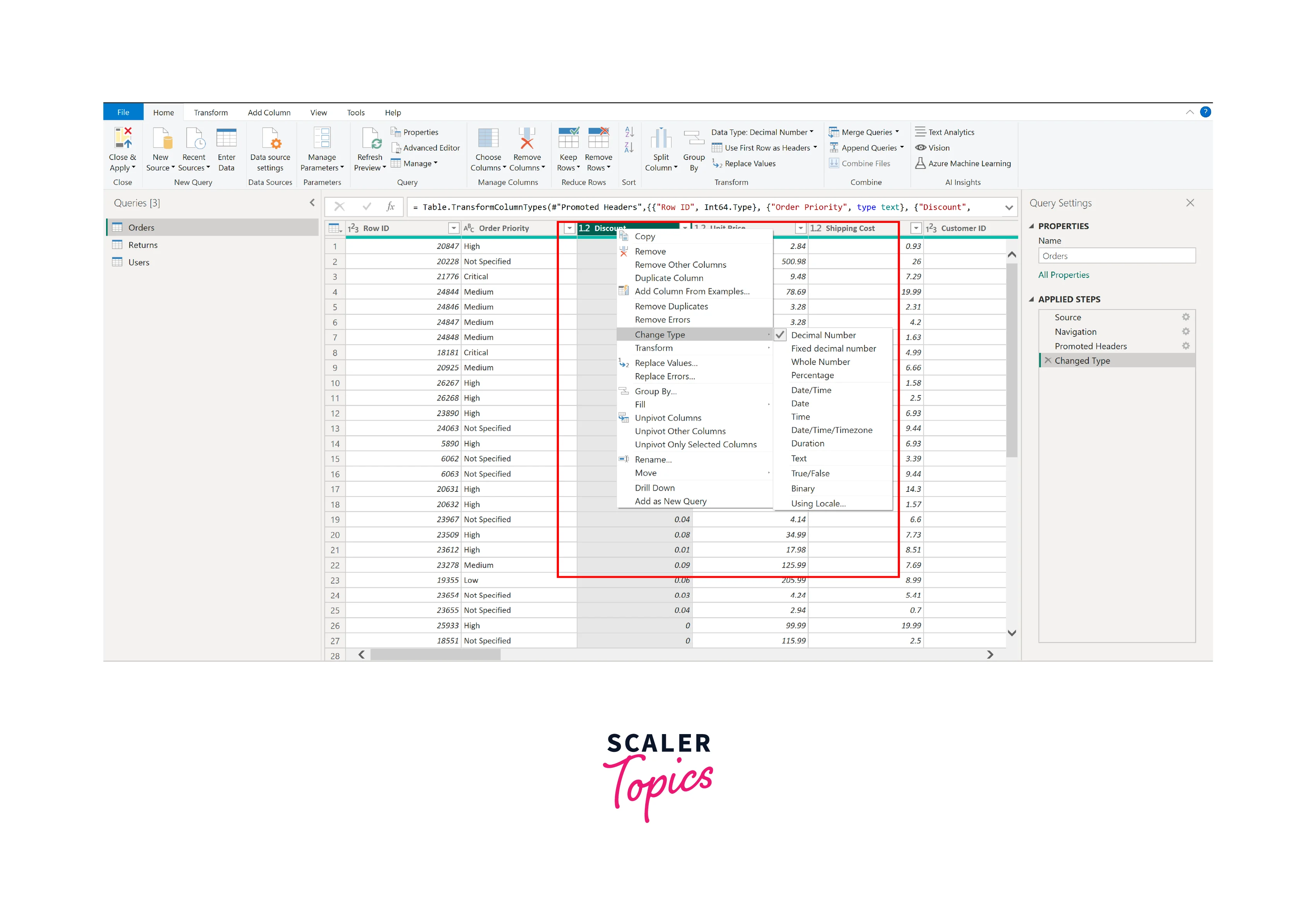 After importing data into Power BI Query Editor, the transformation steps discussed in this section can be executed in any sequence. To bring data into the query editor, you can follow the steps mentioned below: