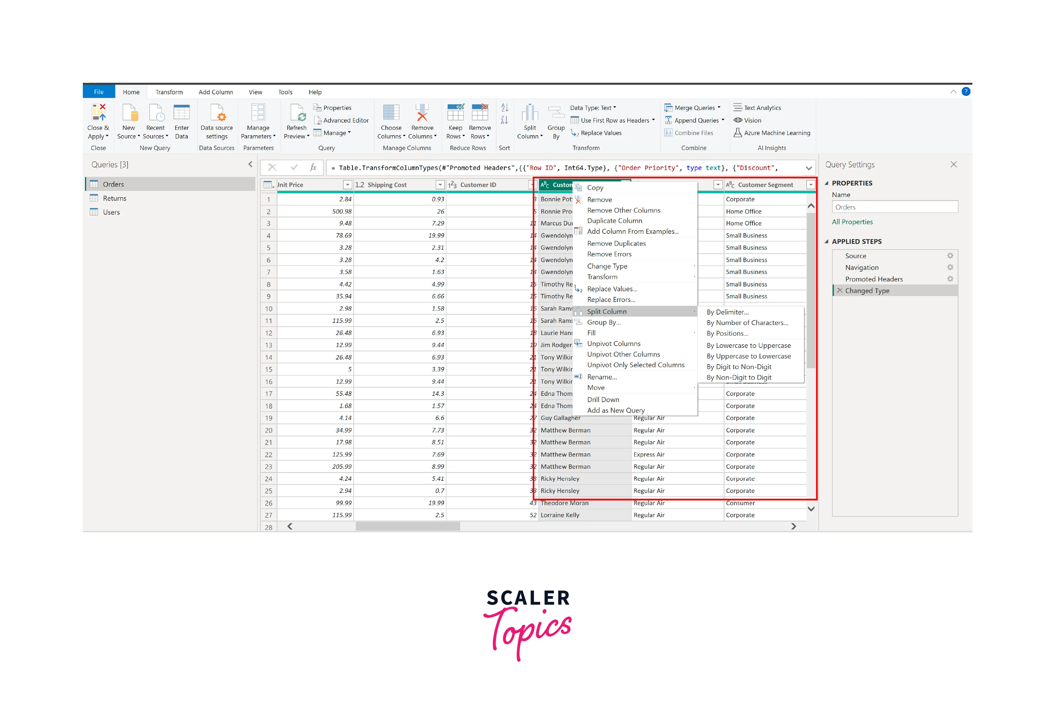 Here are the steps for splitting and extracting data/columns in Power BI: