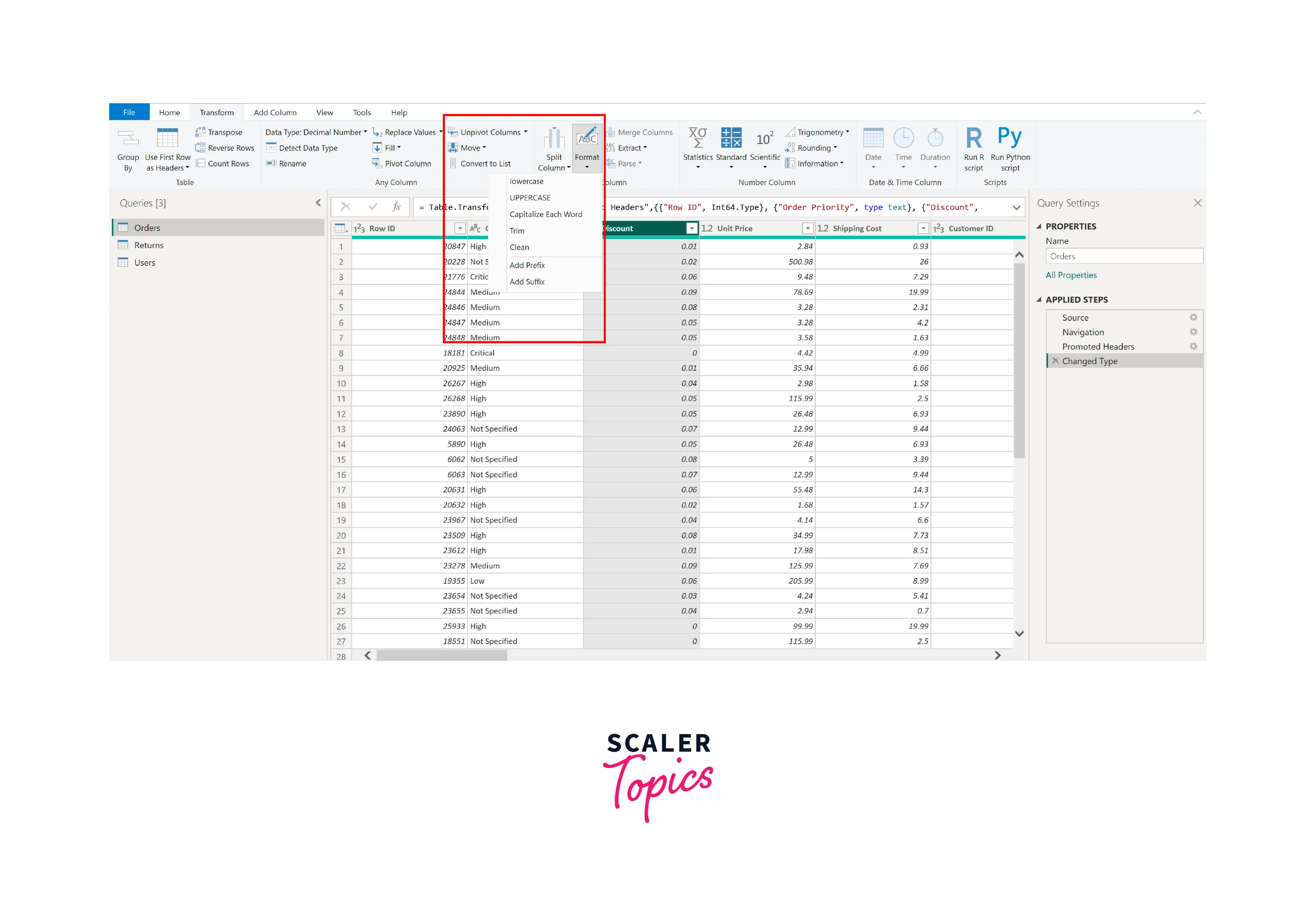 Formatting options can also be accessed via the 'Transform' tab of the ribbon, enabling you to clean, trim, and adjust the text's case. This functionality is valuable for streamlining text fields, simplifying subsequent transformations, and enhancing readability. The 'Trim' option, in particular, proves useful for eliminating leading or trailing spaces.