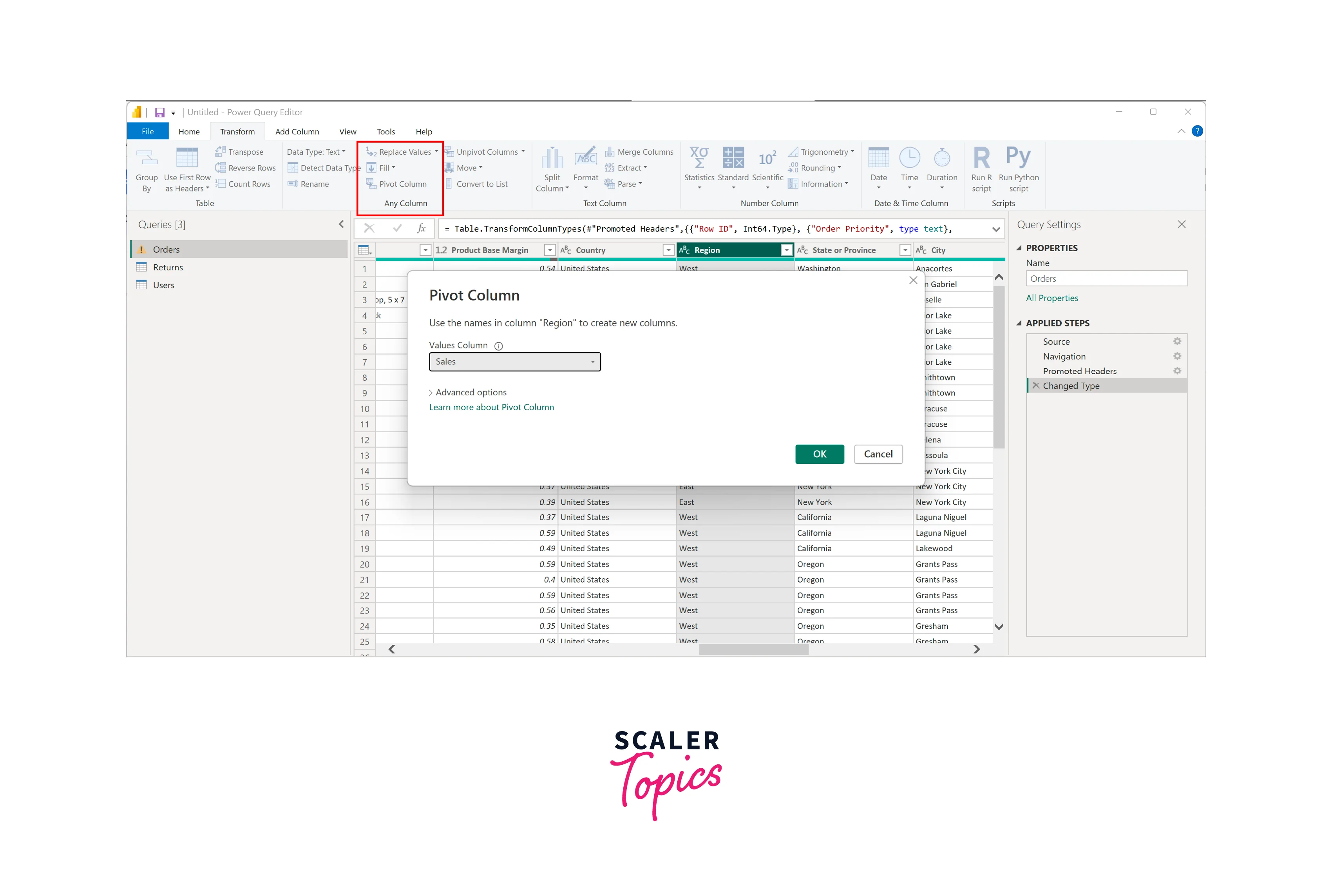 - In the pivot dialog box, under the Value column list, choose the value column. Power Query defaults to using the sum as the aggregation method, but you can opt for the Advanced option to explore other available aggregations before selecting. You can unpivot the columns by right-clicking them and selecting "Unpivot".