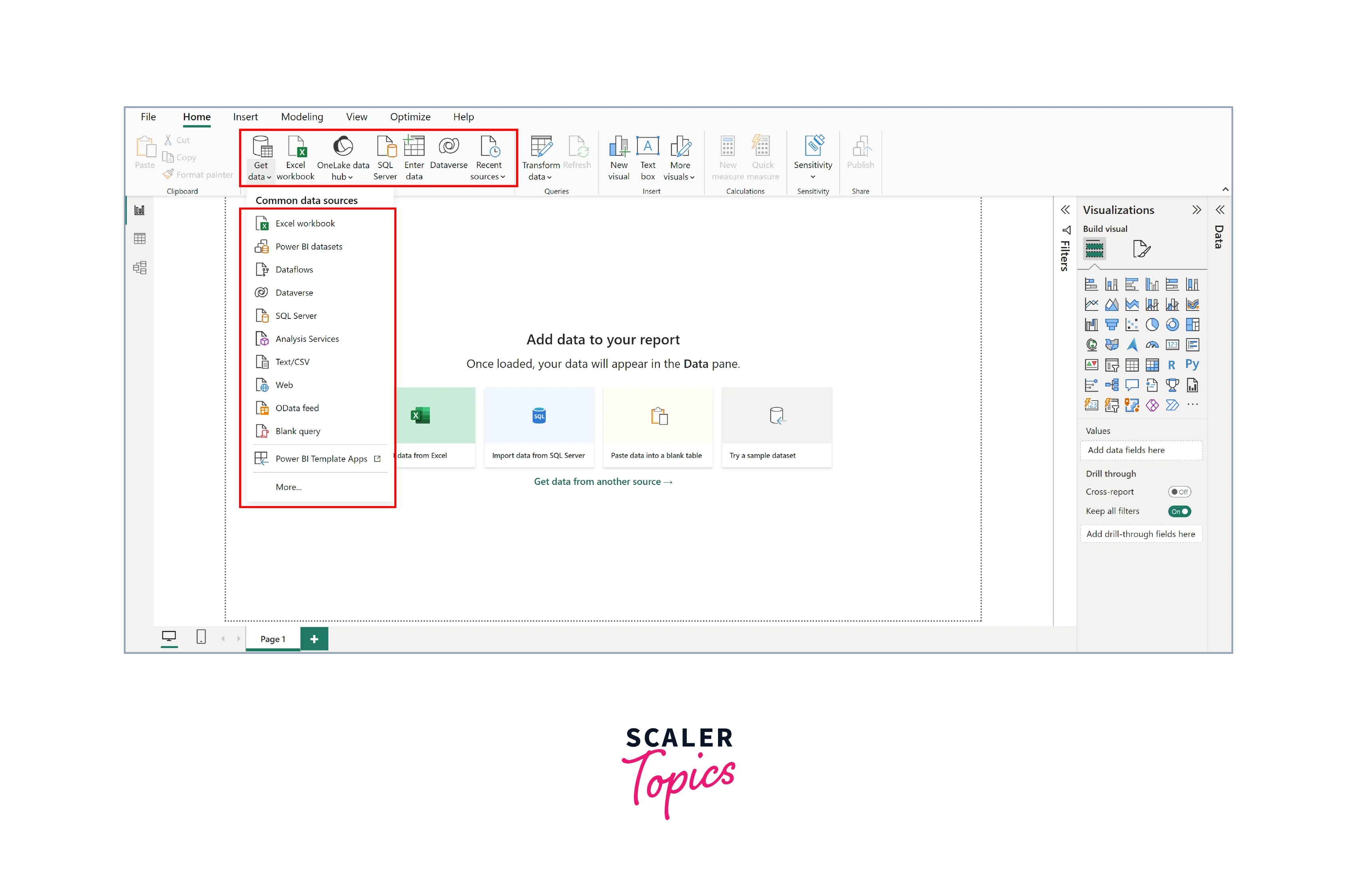 To access data from various platforms, navigate to the "Home" tab on the ribbon section and select "Get Data". This will present you with multiple data source options to choose from.